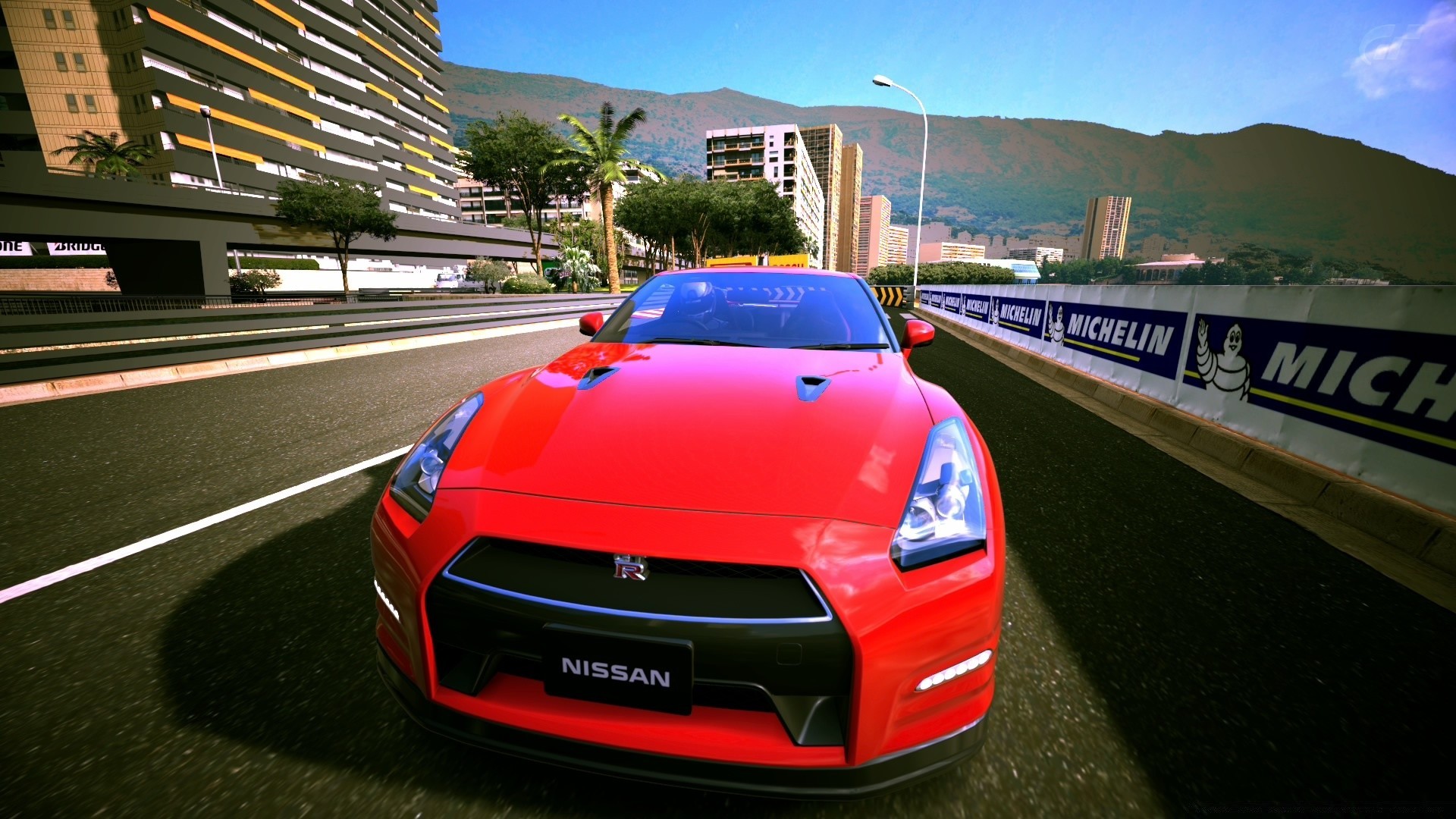 Gelbes Auto vor dem Hintergrund der Noir-Stadt