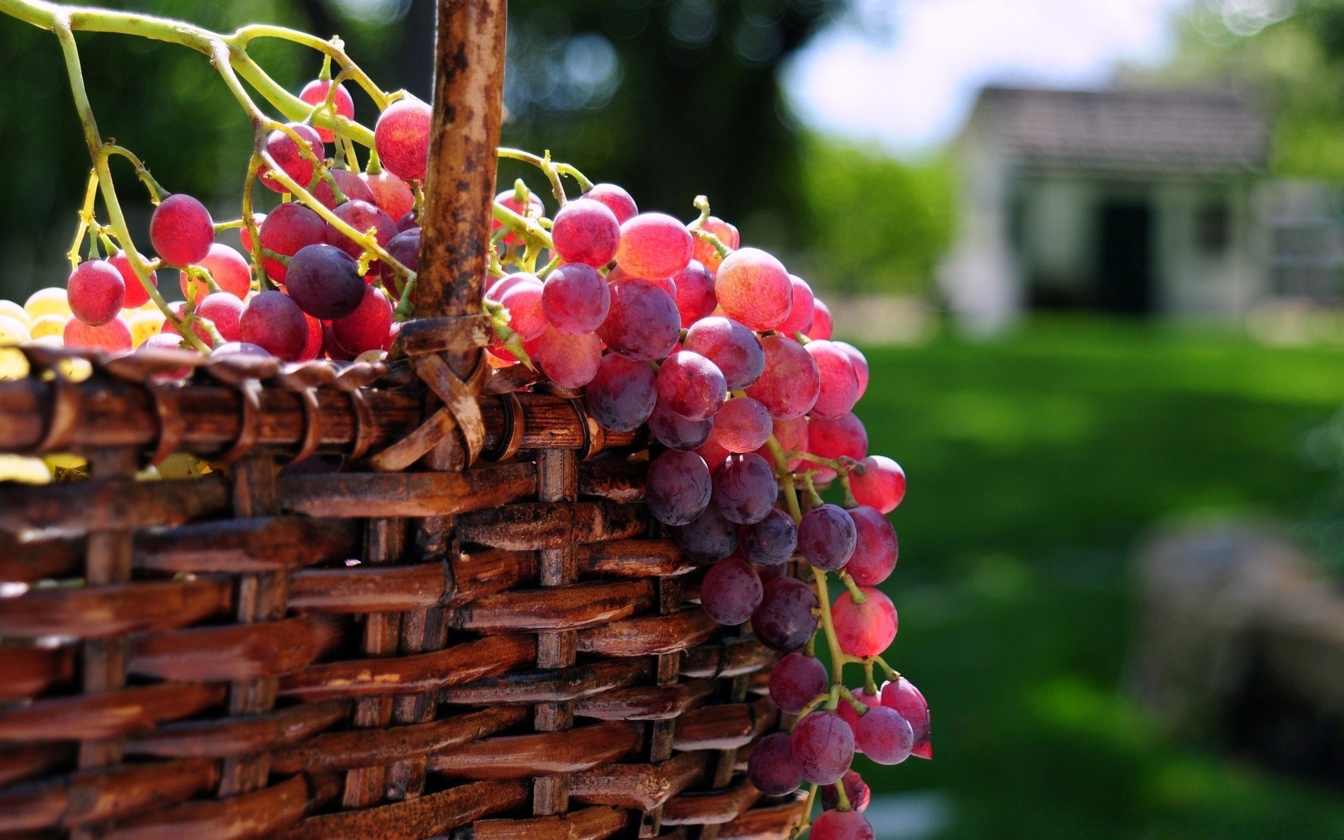 Korb mit Trauben auf verschwommenem Hintergrund