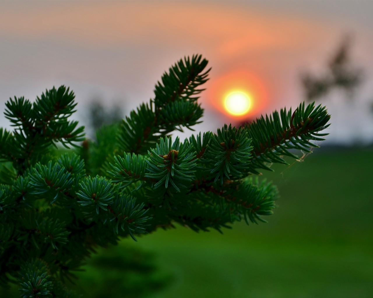 Weihnachtsbaum mit Kugeln vor dem Hintergrund des Schneefalls