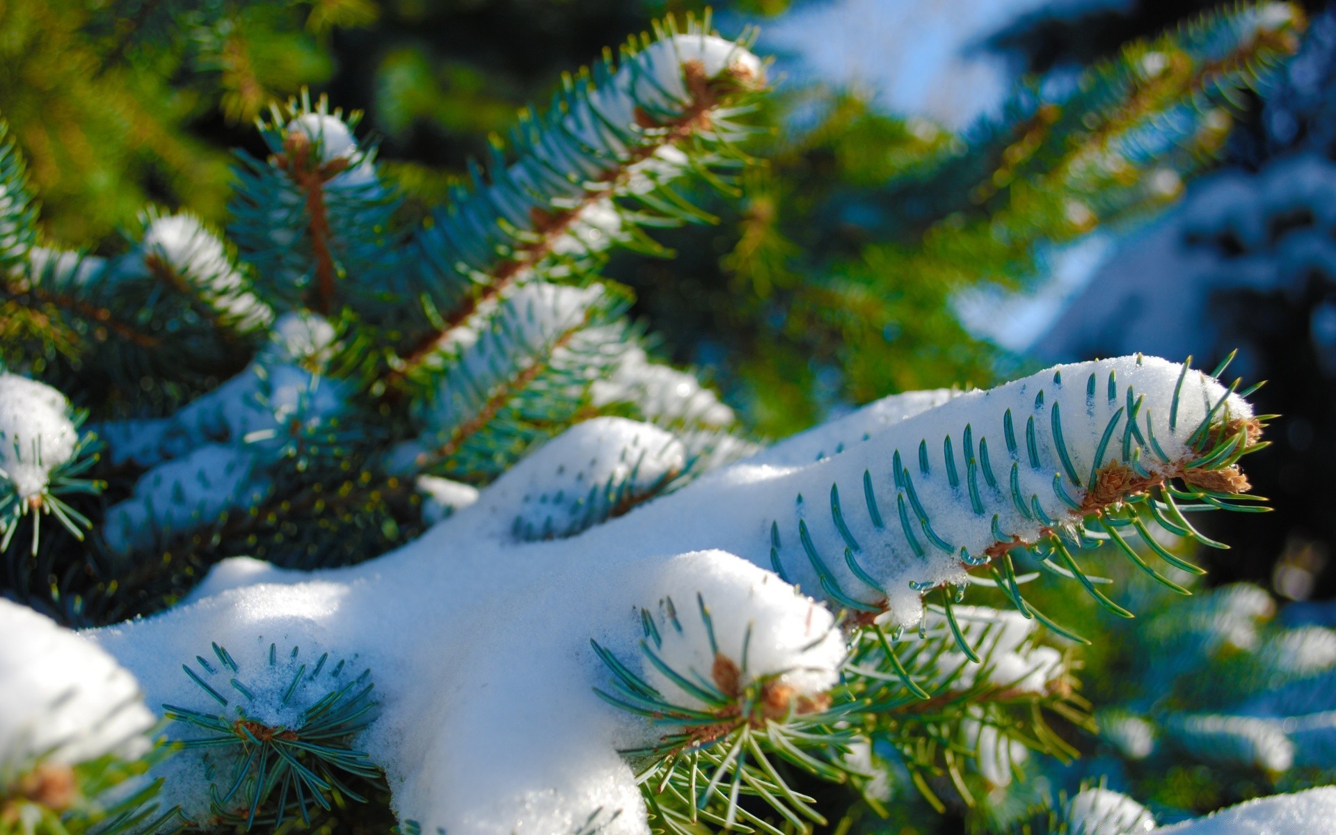 Schneeflocken des Neujahrs mit Tannen und Tannen