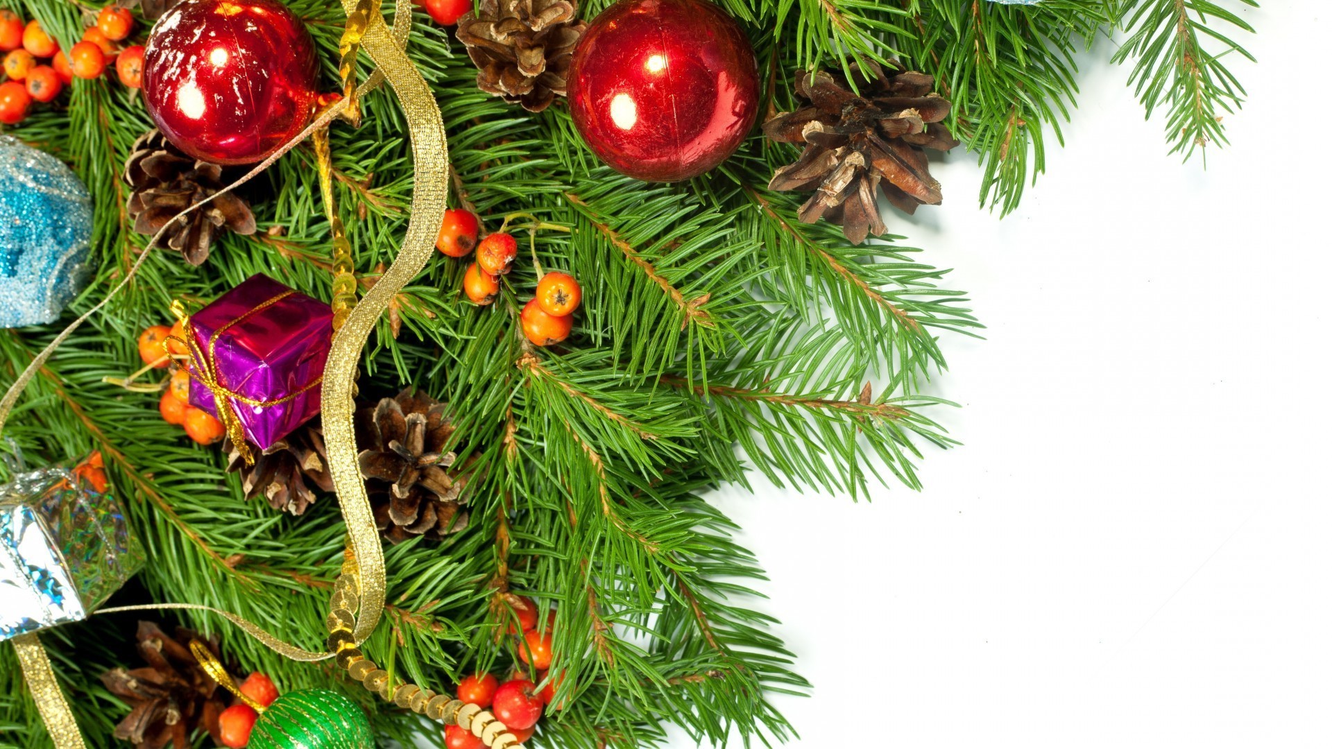 Festliches Set mit Tannenzweigen und Tannenzweigen