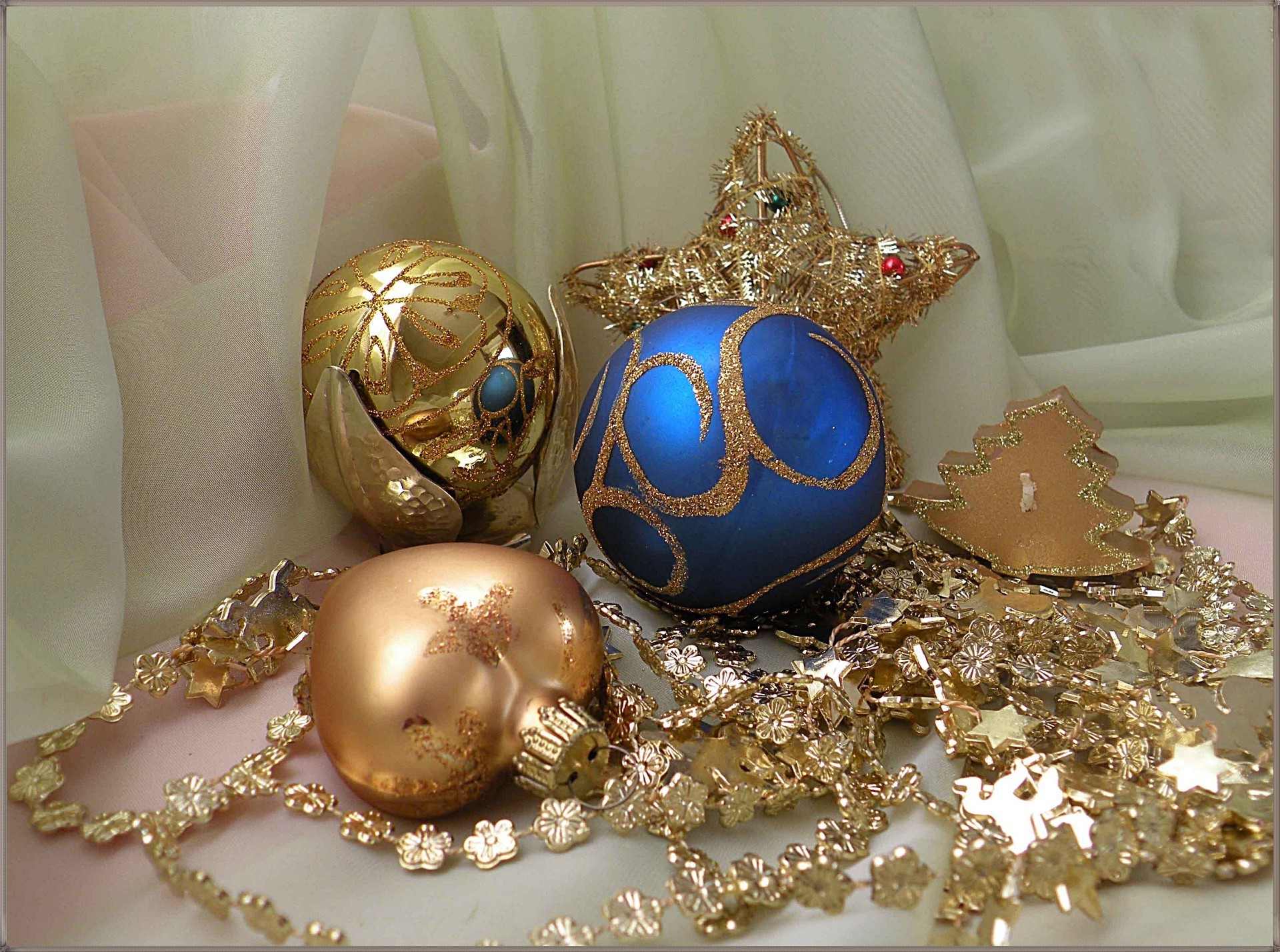 Foto von festlichen blauen und goldenen Luftballons auf hellem Hintergrund