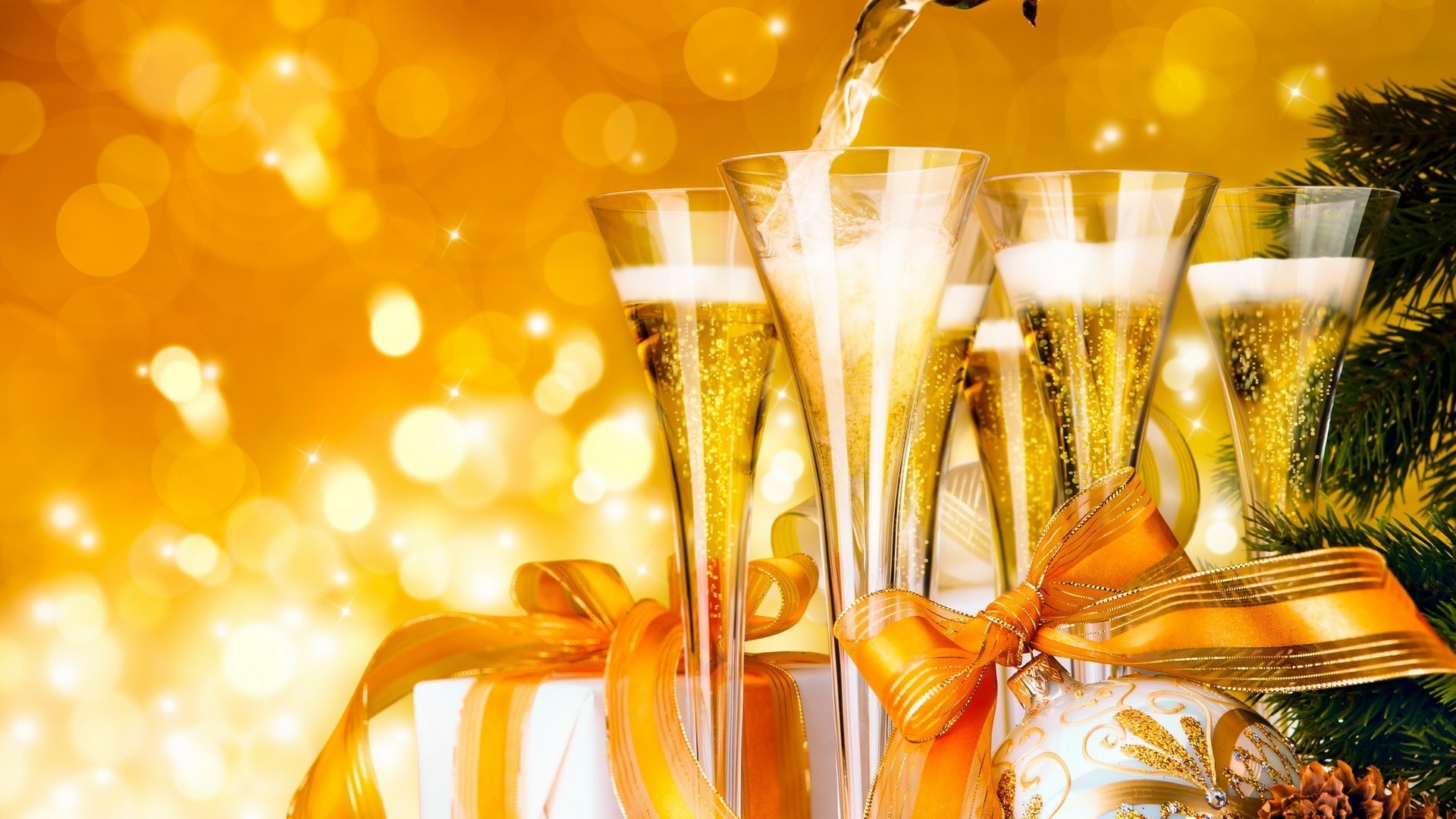 Champagner in gläsern vor dem hintergrund der brennenden wunderkerzenChampagner in Gläsern vor dem Hintergrund der brennenden Wunderkerzen