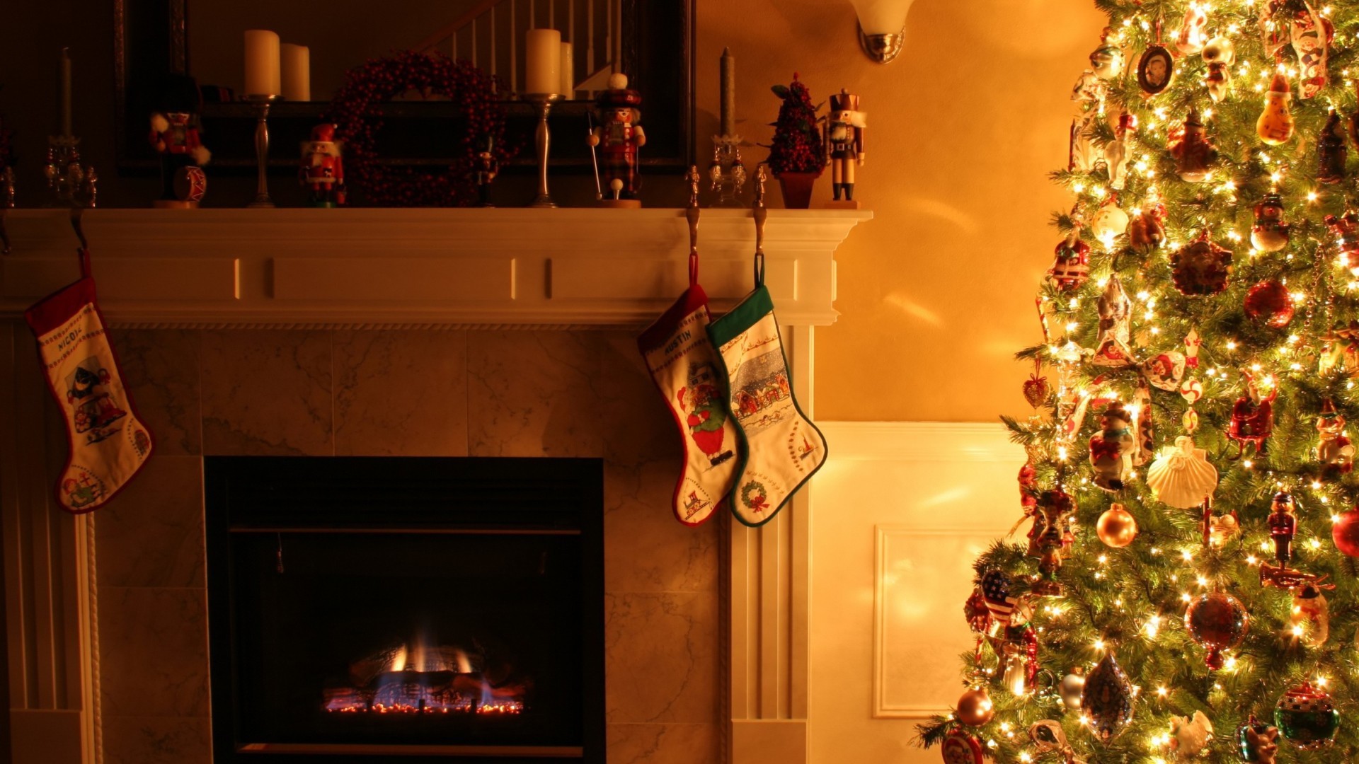 Stimmungsecke mit Kamin und Weihnachtsbaum