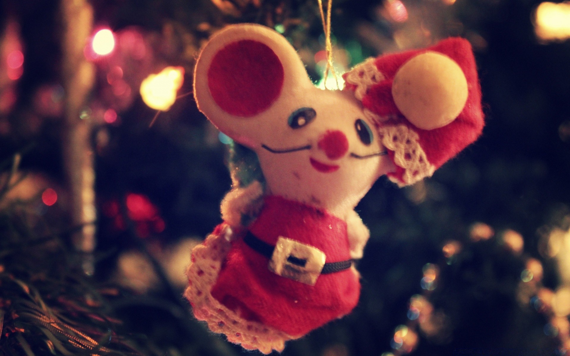 Weihnachtsbaum-Spielzeug im Mondlicht mit Schneeflocken