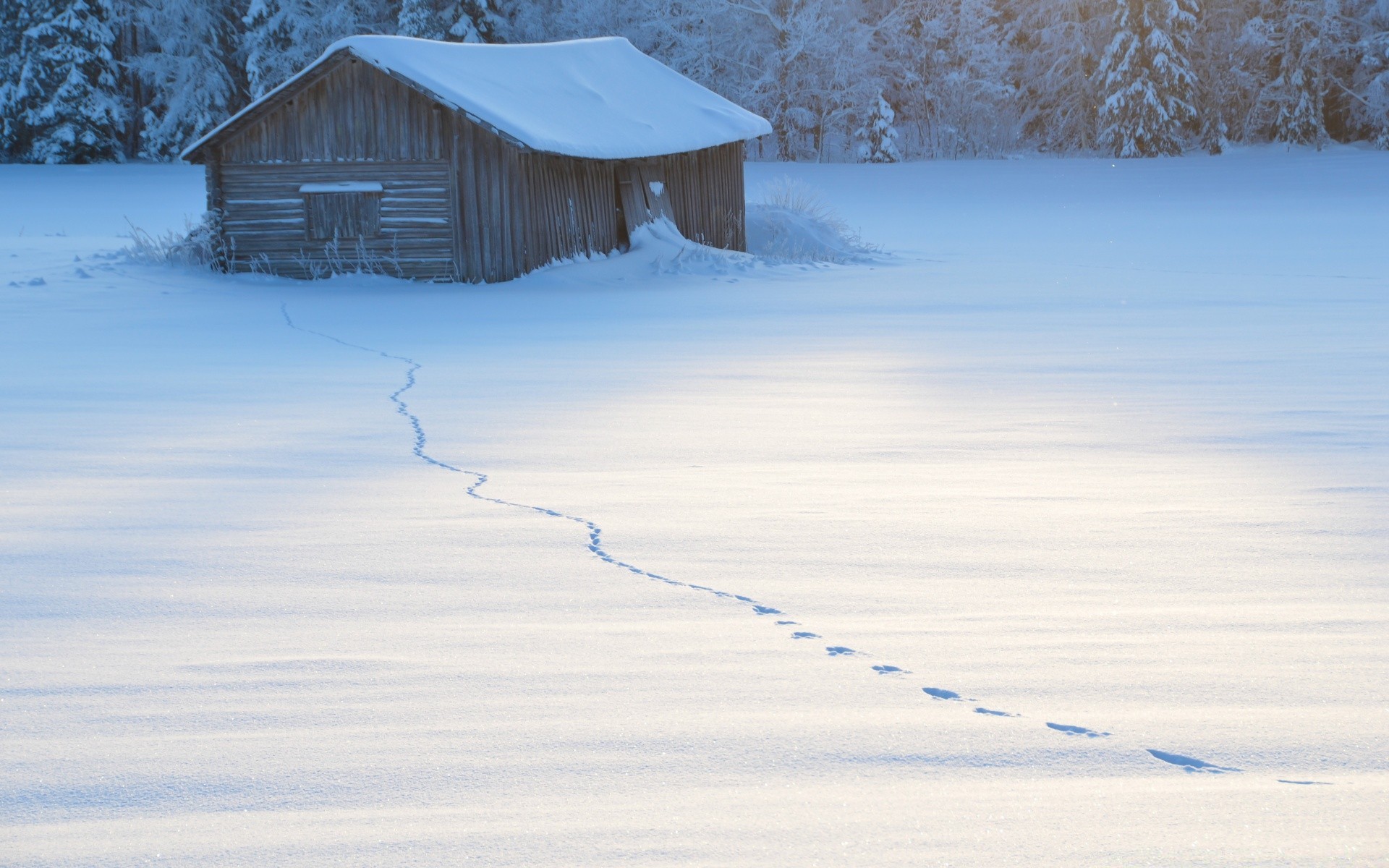 Der Weg der Spuren durch den Schnee zum Haus