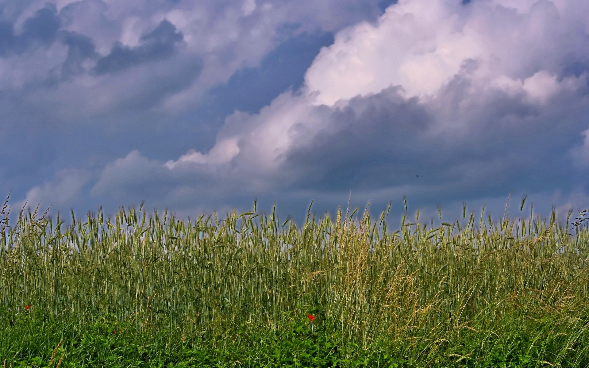 Bald wird es regnen, Schwere Wolken und der Wind, der die Wiesengras wirbelt