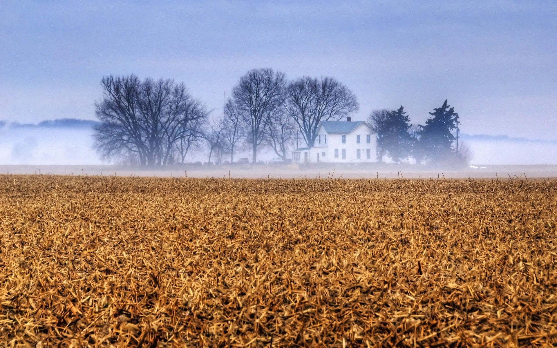 Schwarz-Weiß-Feld im Morgengrauen in Monochrom