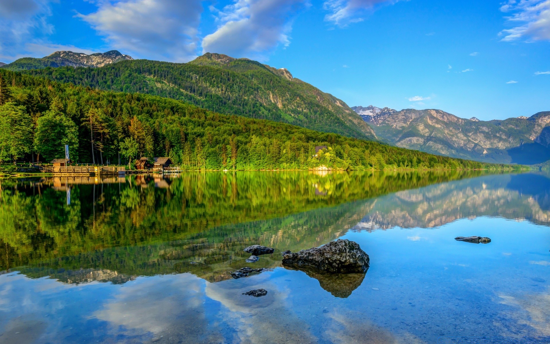 Landschaft eines ruhigen Sees am Fuße des Berges