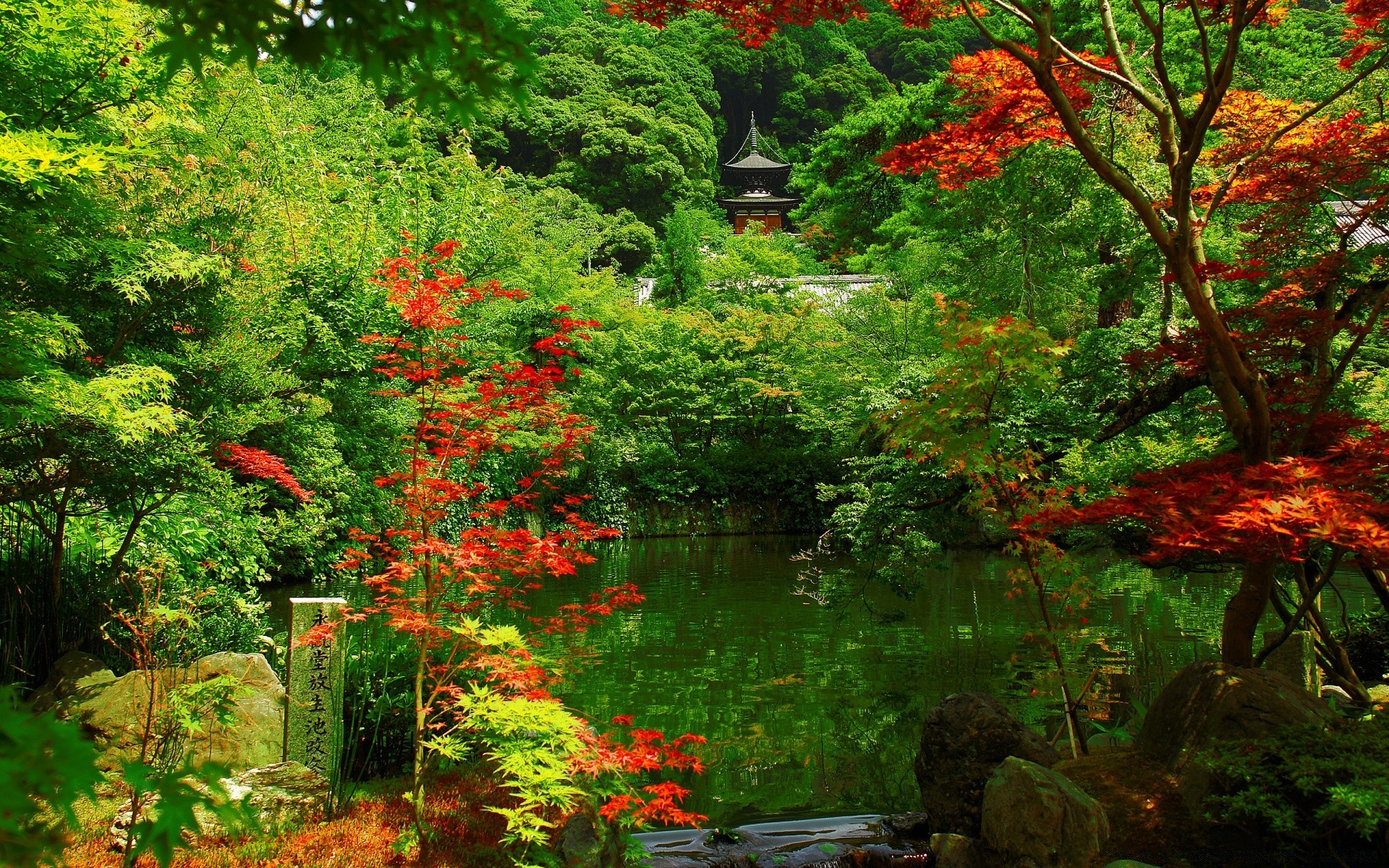 Herbstlandschaft mit roten japanischen ahornbäumen. momijiHerbstlandschaft mit roten japanischen Ahornbäumen. Momiji
