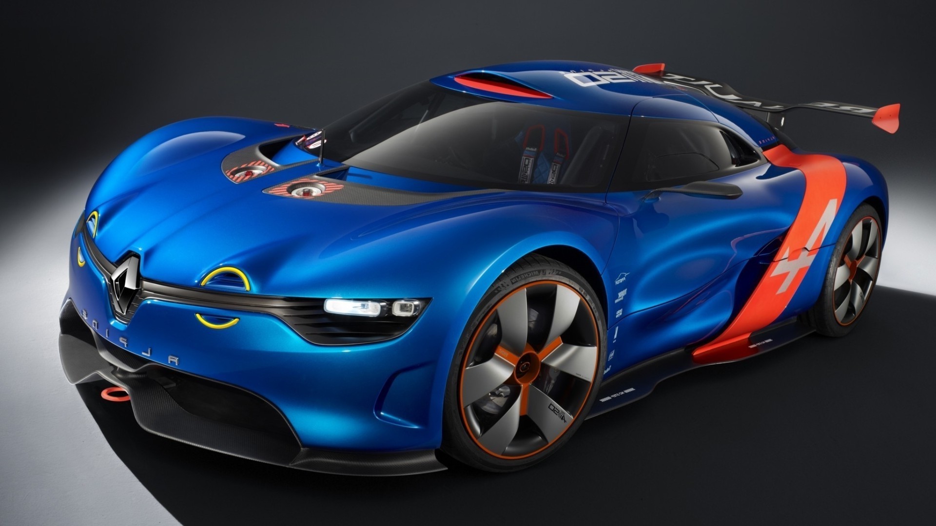 Ein leuchtend rotes auto fährt mit geschwindigkeit auf einer idealen straßeEin leuchtend rotes Auto fährt mit Geschwindigkeit auf einer idealen Straße