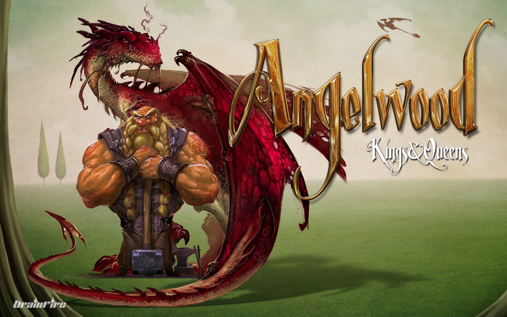Der Drache deckt den Wikinger-Flügel mit einem Hammer in der Hand ab