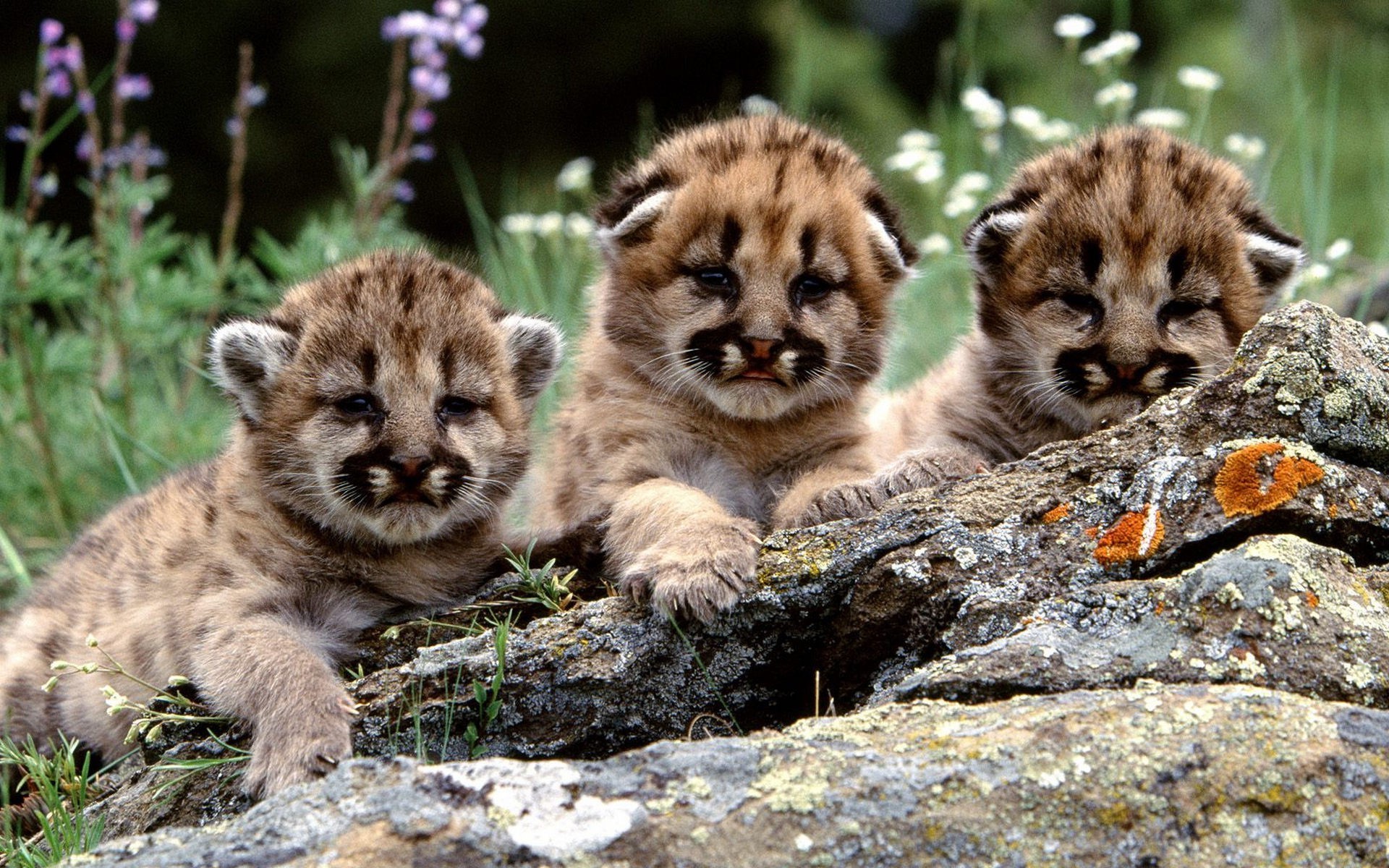 Drei Tigerbabys werden von einem abgelegenen Ort aus beobachtet
