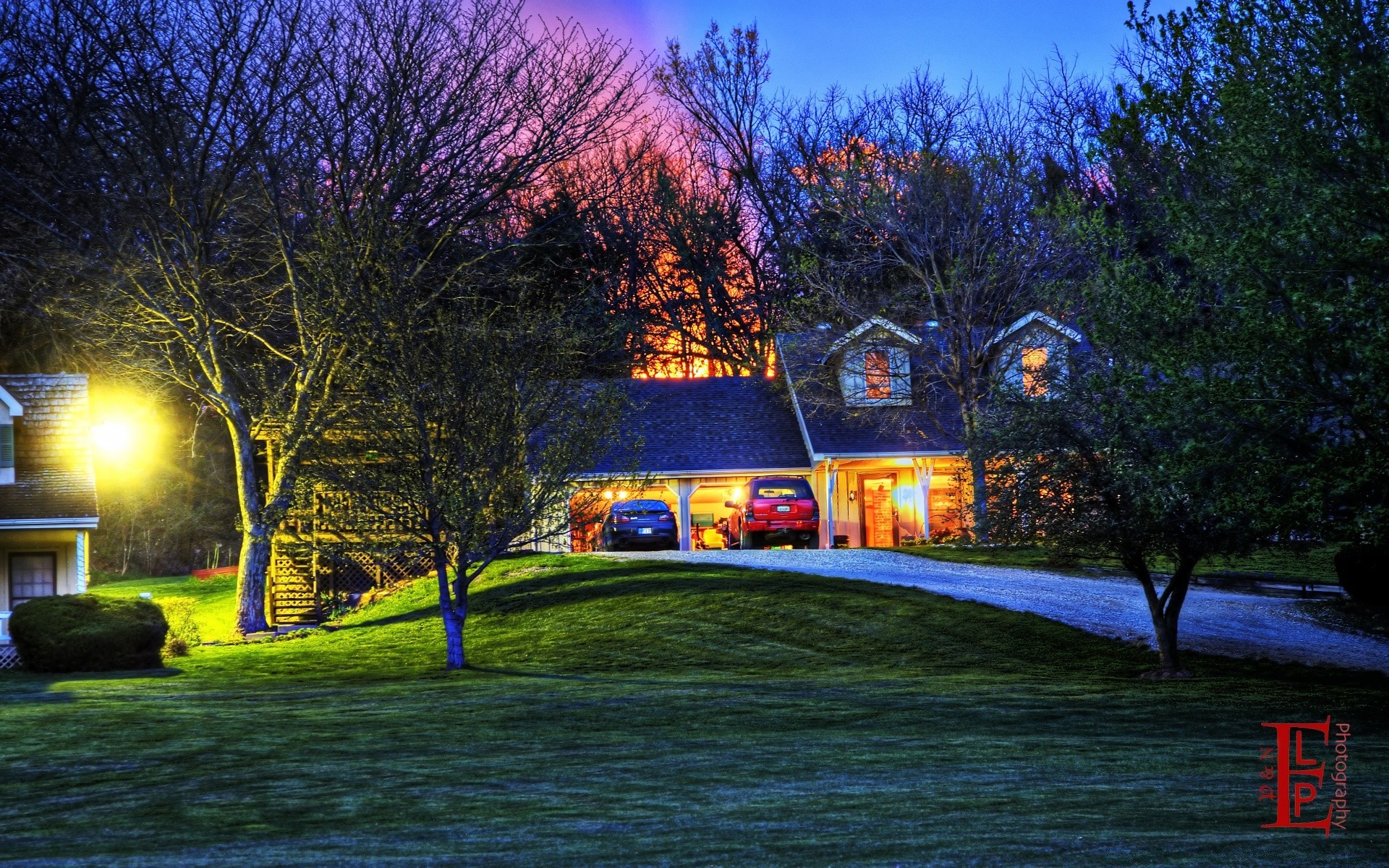 Abendlandschaft des Hauses im Freien