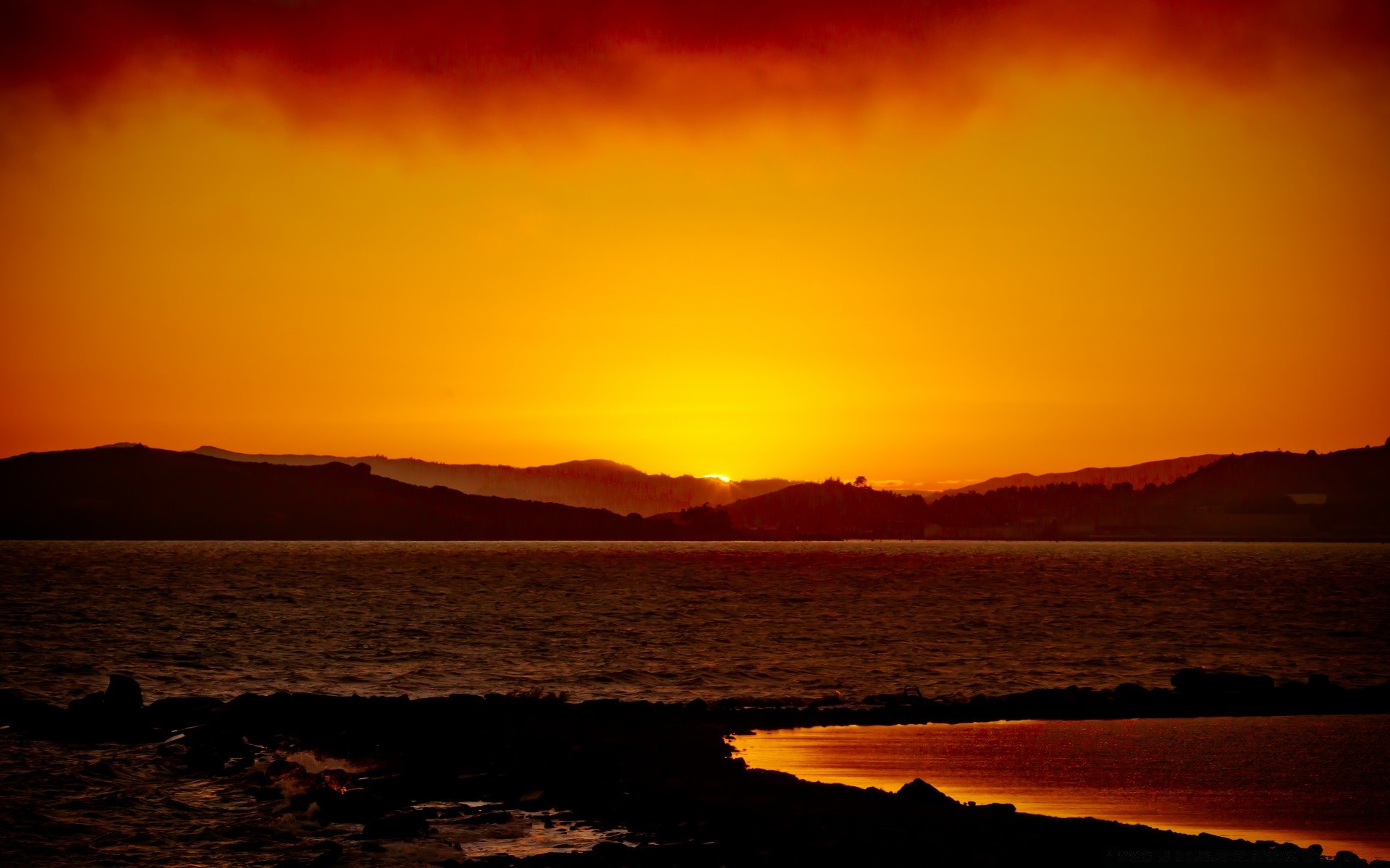 Orange sonnenuntergang. wallpaper horizont