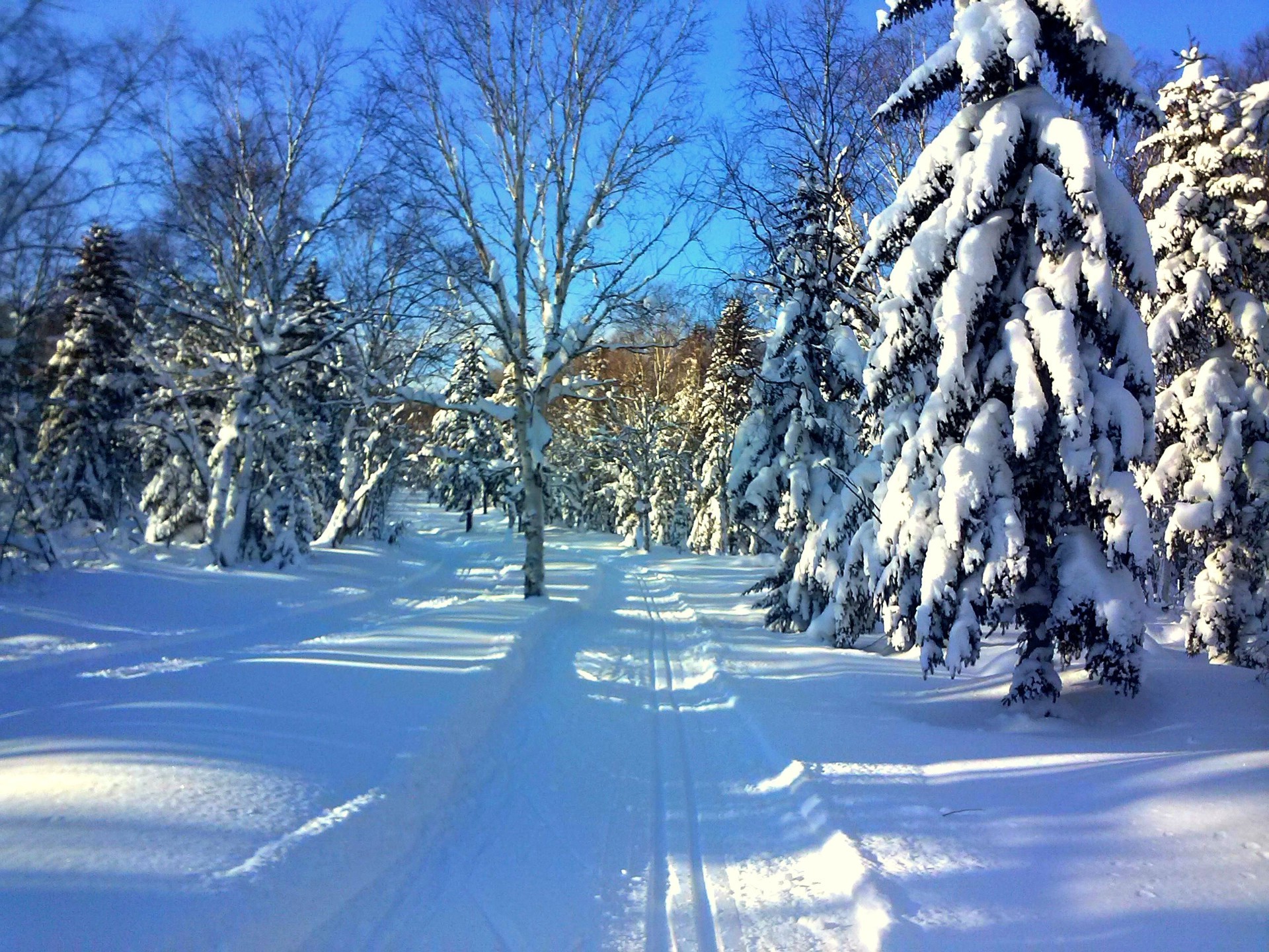 Rand im Winter mit Weihnachtsbäumen vor dem Hintergrund der Berge