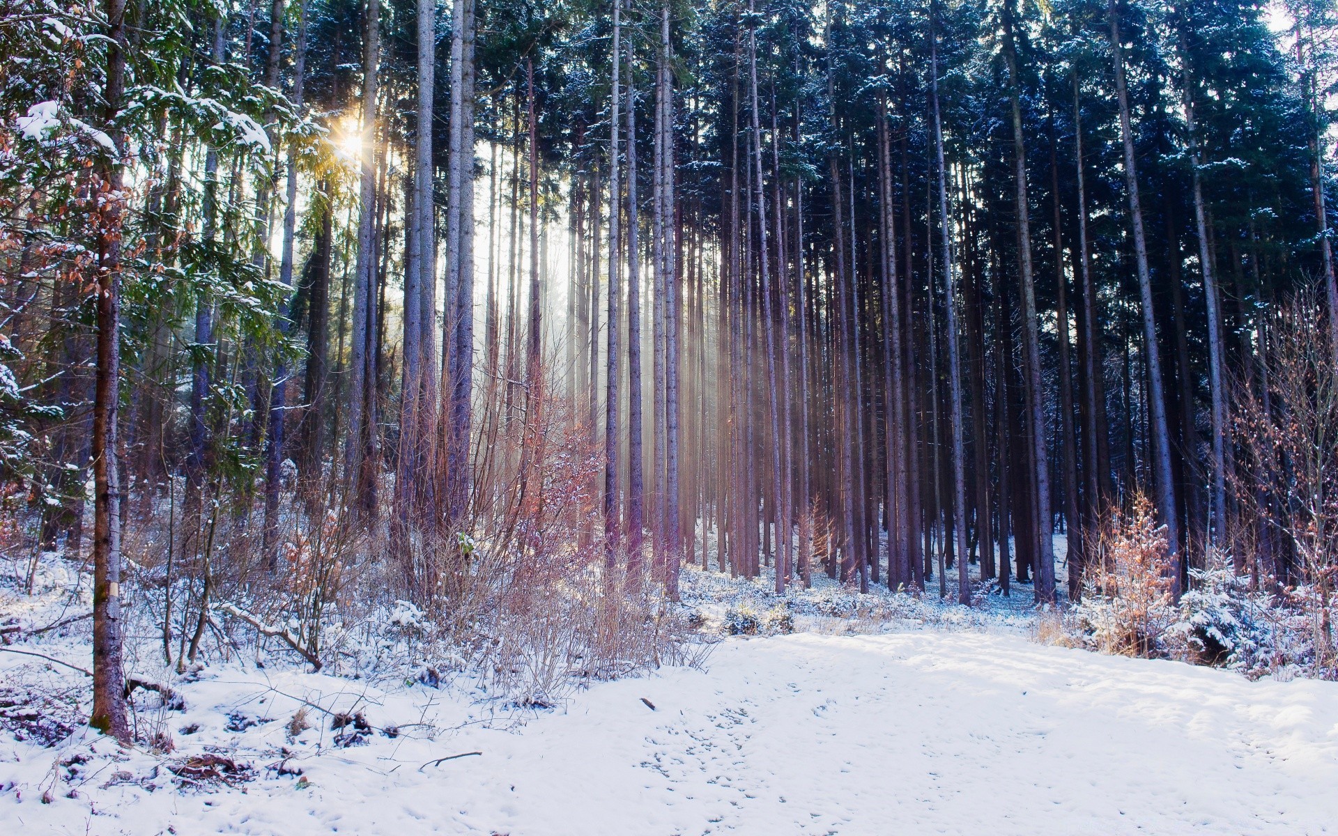 Im Winter sind alle Weihnachtsbäume im Schnee im Wald