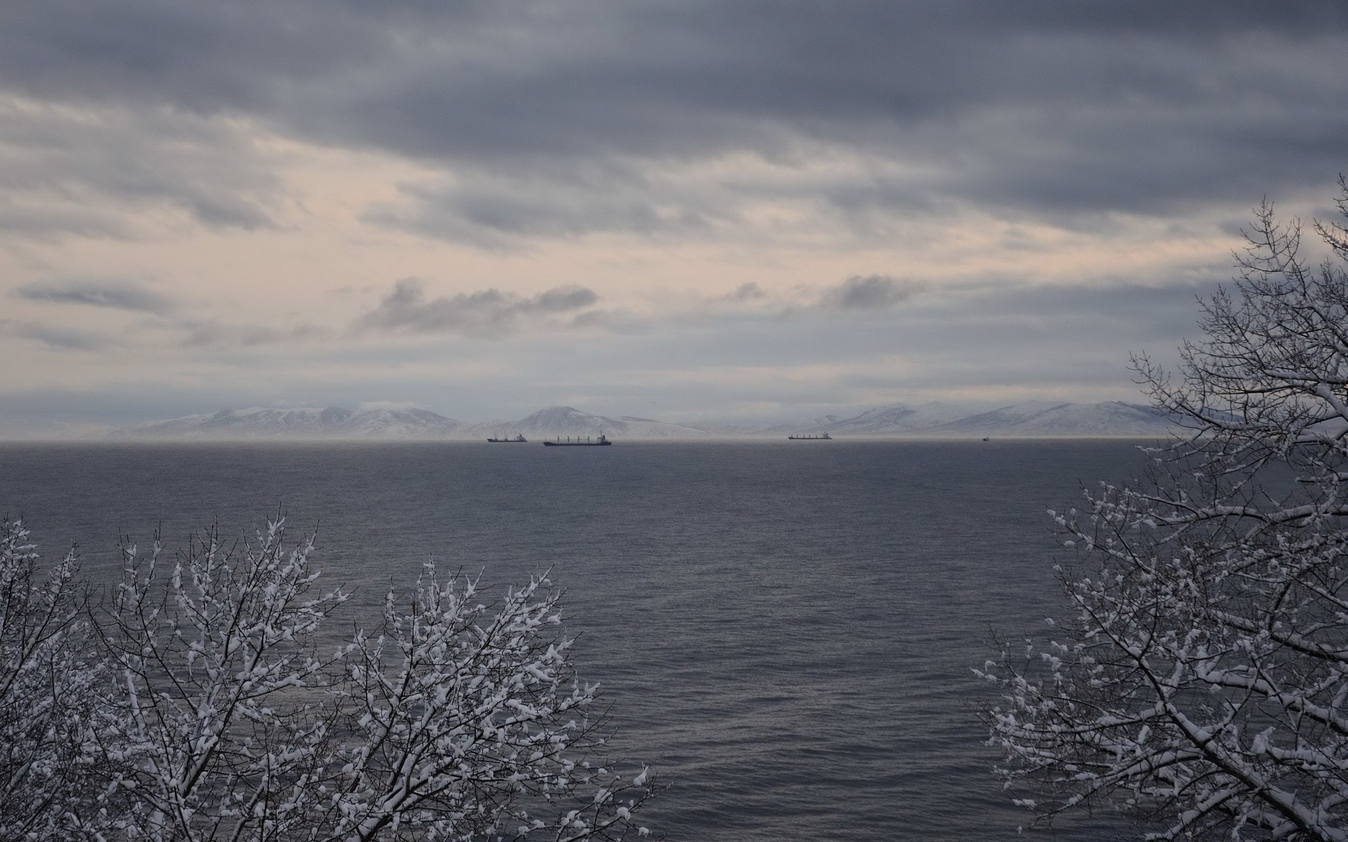 Schwarzer bentley im winter auf der autobahn. vor dem hintergrund der berge und des himmelsSchwarzer Bentley im Winter auf der Autobahn. Vor dem Hintergrund der Berge und des Himmels