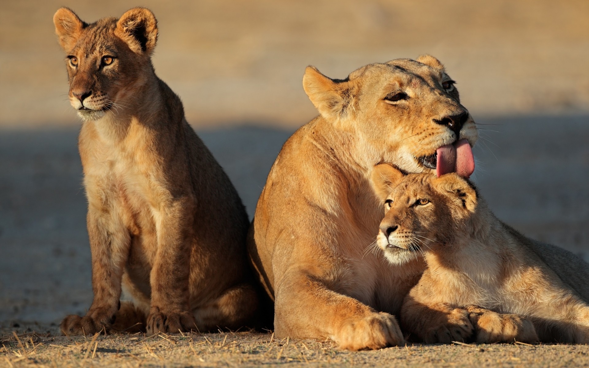 Ein Wolf mit ausgestreckter Zunge schaut hinter einem Baum hervor