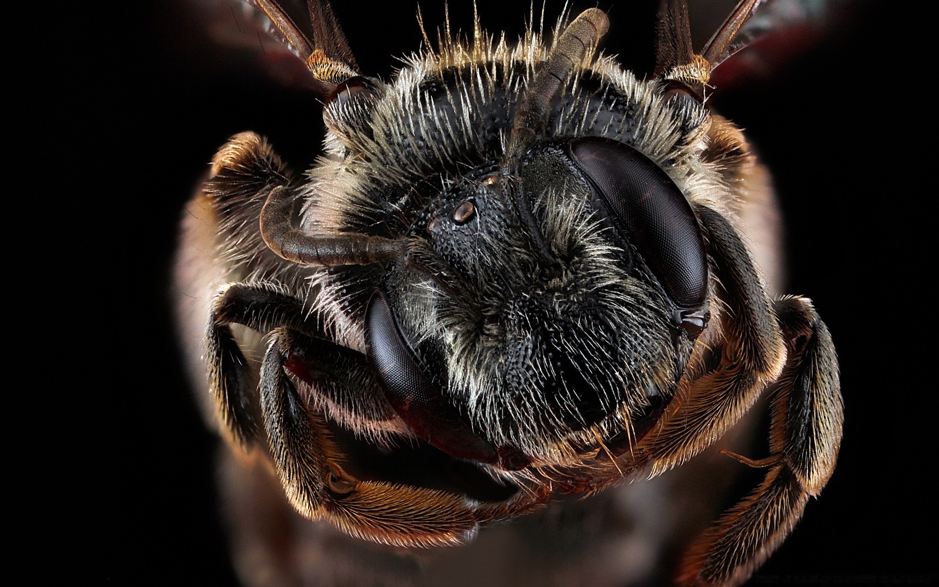 Makroaufnahmen eines insekts mit riesigen augen und einem flauschigen stierMakroaufnahmen eines Insekts mit riesigen Augen und einem flauschigen Stier