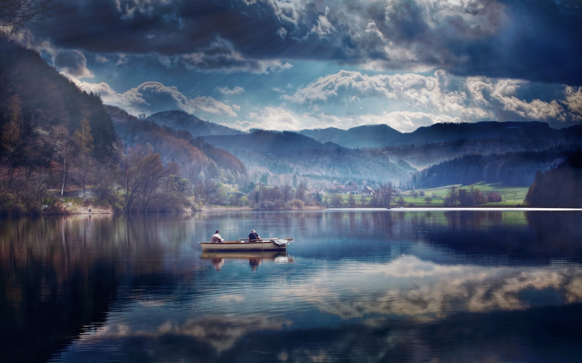 Eine Landschaft mit düsterem Wetter, eine Straße mit einer Kurve