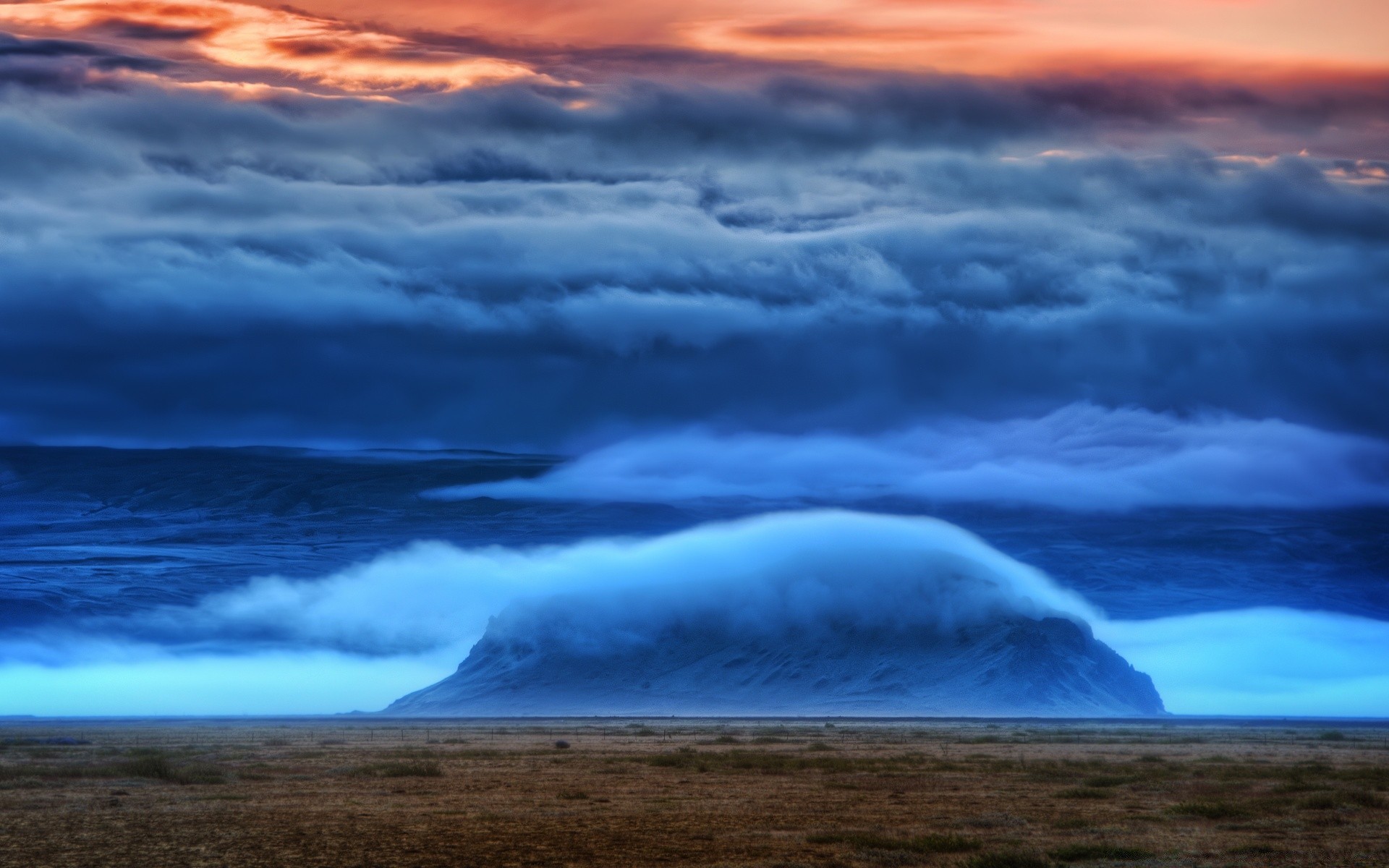 Viele Wolken, weit weg ein Dorf