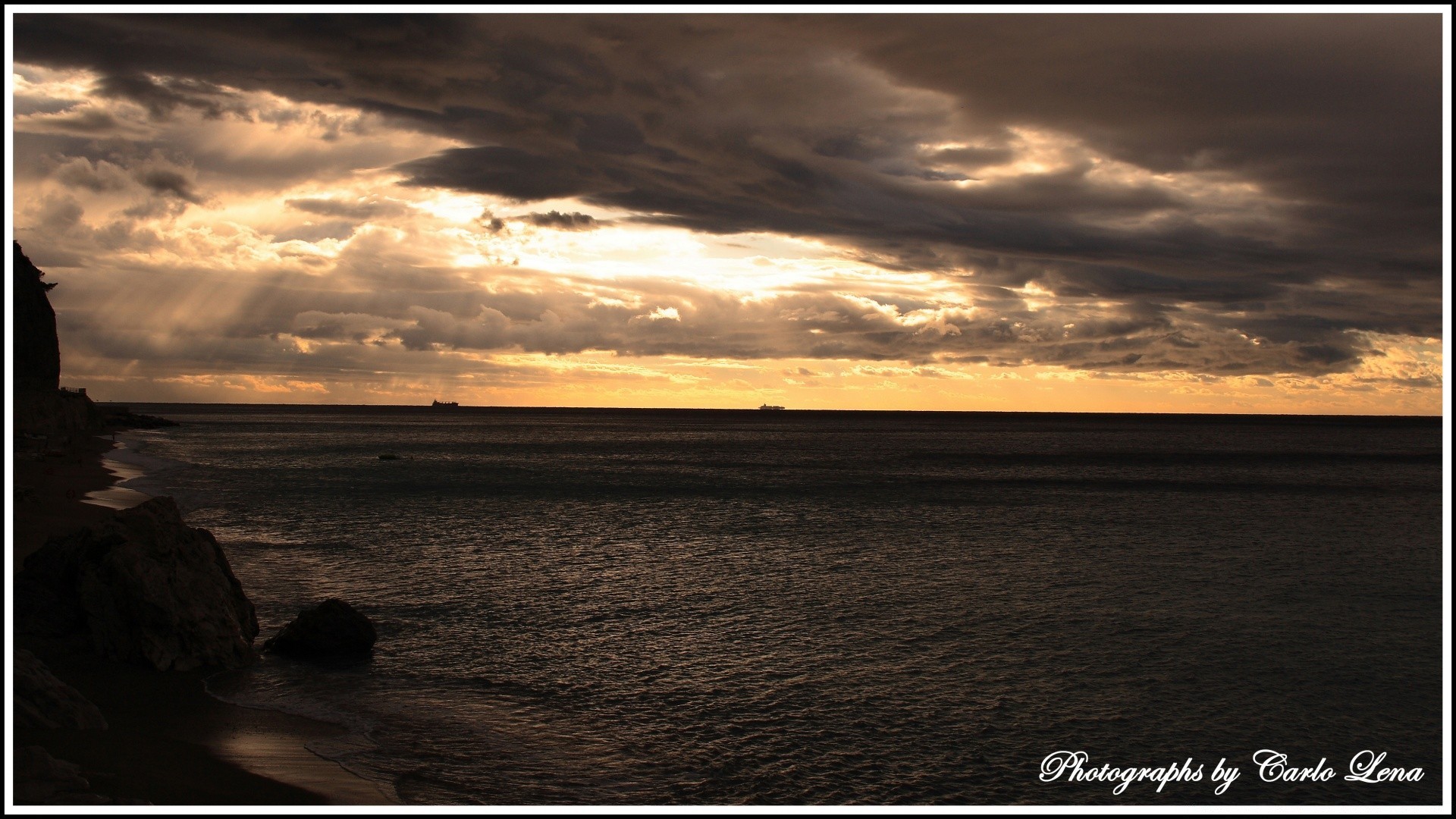 Ein heller Streifen der Morgendämmerung über dem Ozean