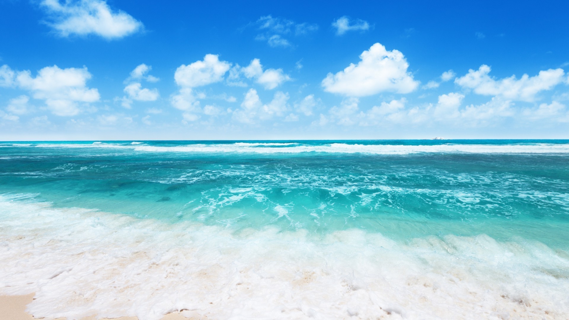 Wolken am blauen Himmel und türkisfarbene Wellen