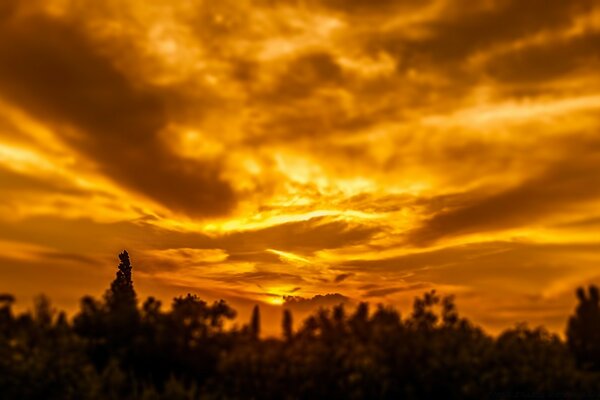 Landschaft Wolken und Bäume Sonnenuntergang