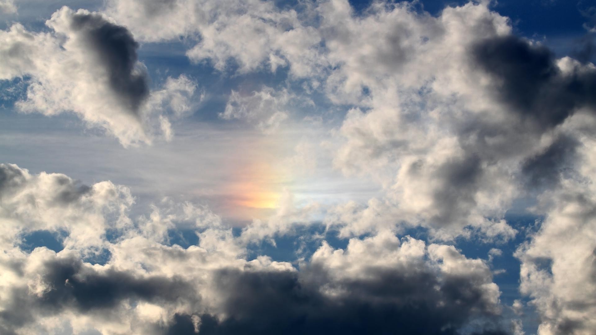 Sonnenuntergang Himmel mit Sonne hinter Wolken