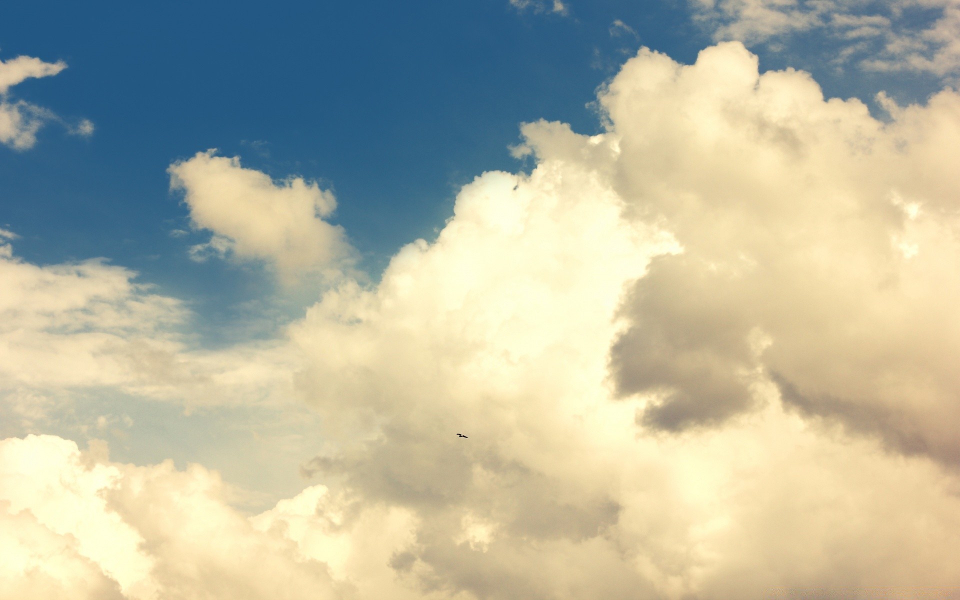 Blumenfeld vor dem Hintergrund von Wolken und blauem Himmel