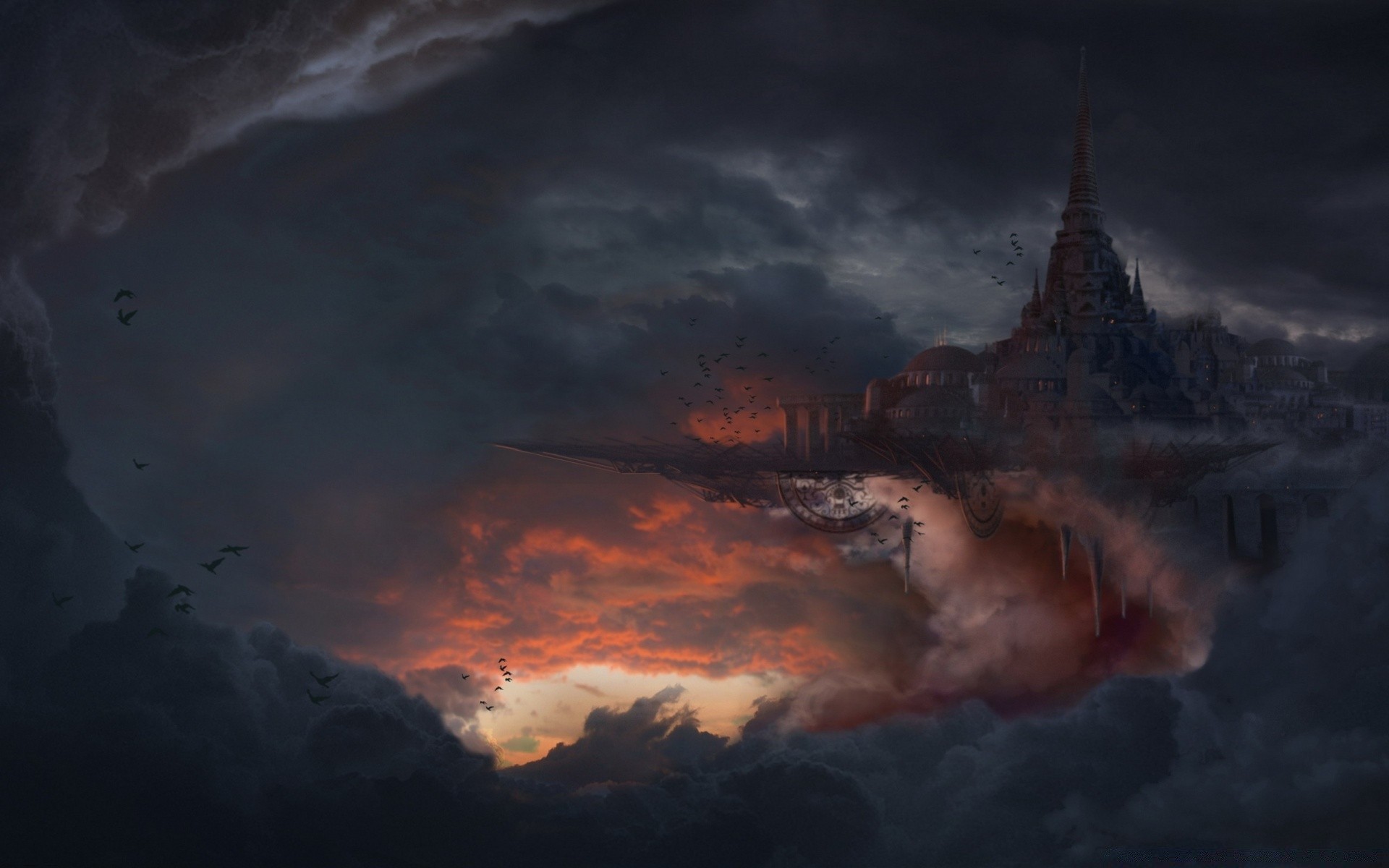 Apfel auf Wolken mit Federn um auf schwarzem Hintergrund