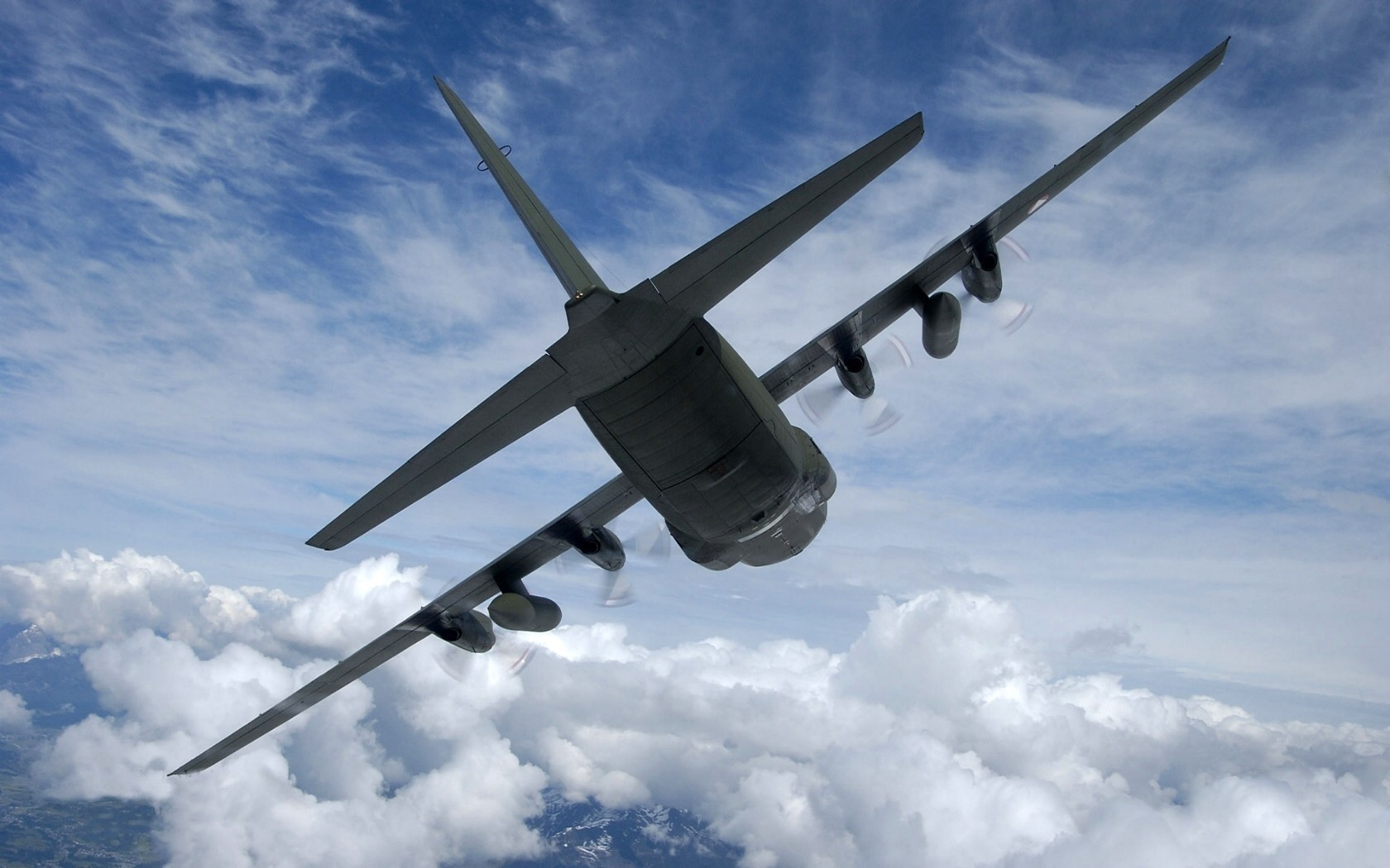 Transportflugzeug in den Wolken