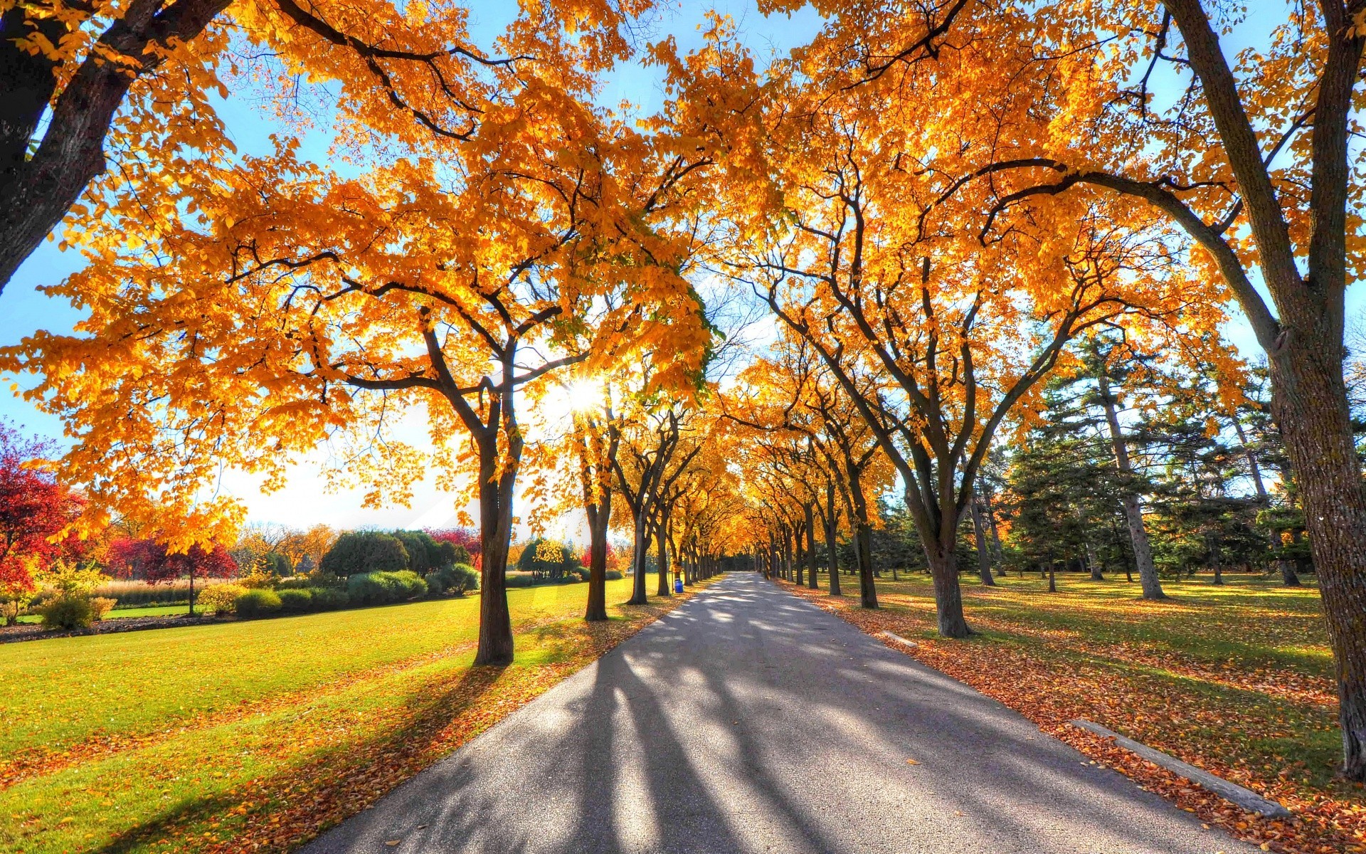 Herbststraße entlang des Waldes