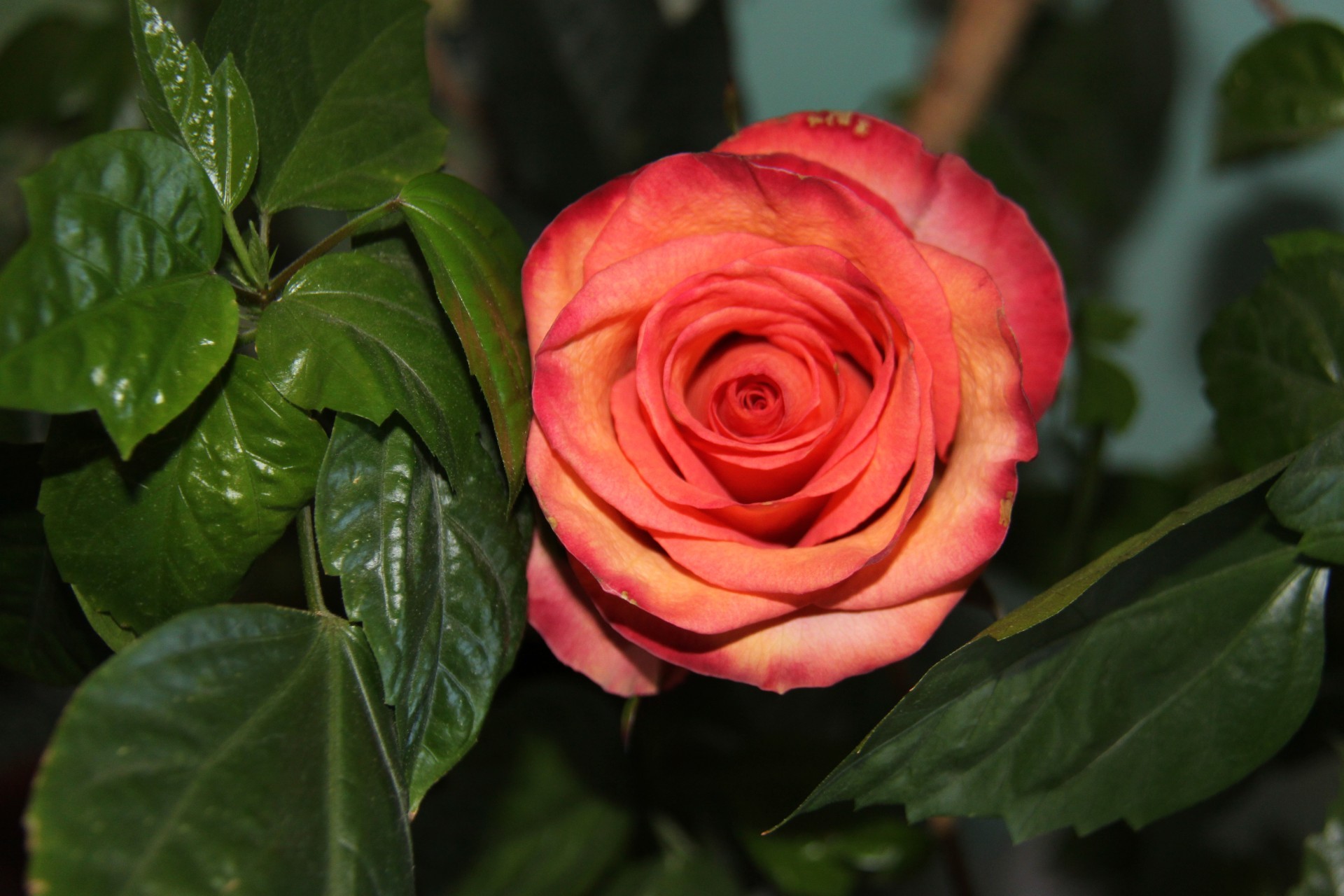 Rose auf einem Hintergrund von hellen grünen Blättern