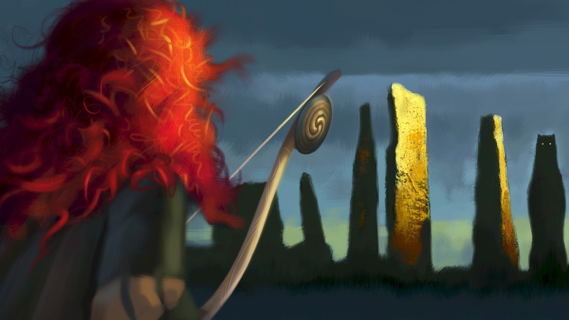 Das Bild von gnomeo & juliet auf dem Hintergrund der Sterne und des Mondes
