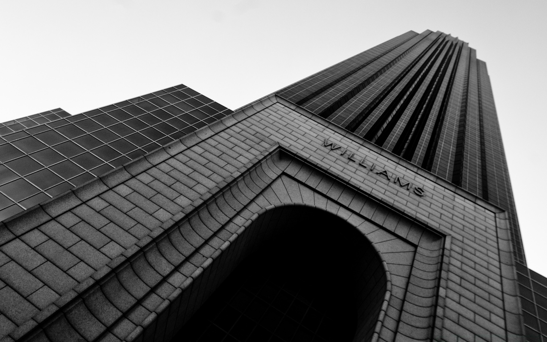 Schwarz-Weiß-Bild eines architektonischen Gebäudes