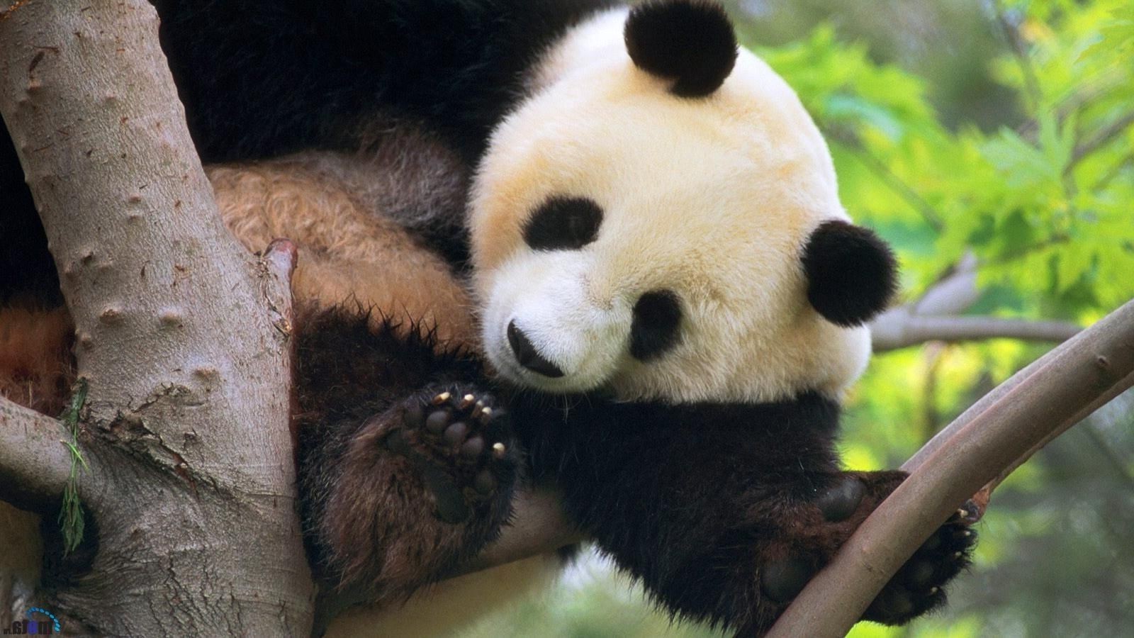 Cartoon Panda isst Fisch mit Bambusstäbchen