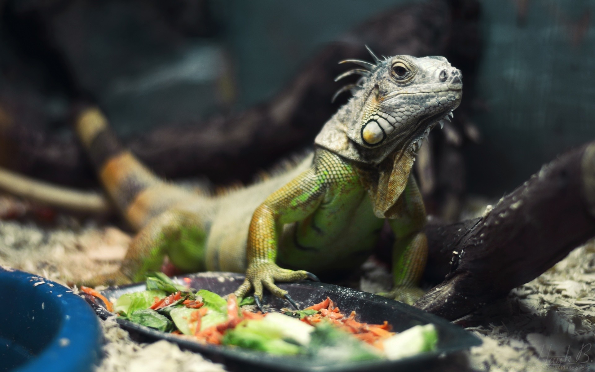 Grünes Reptil Eidechse Natur Bambus schwarze kleine Augen