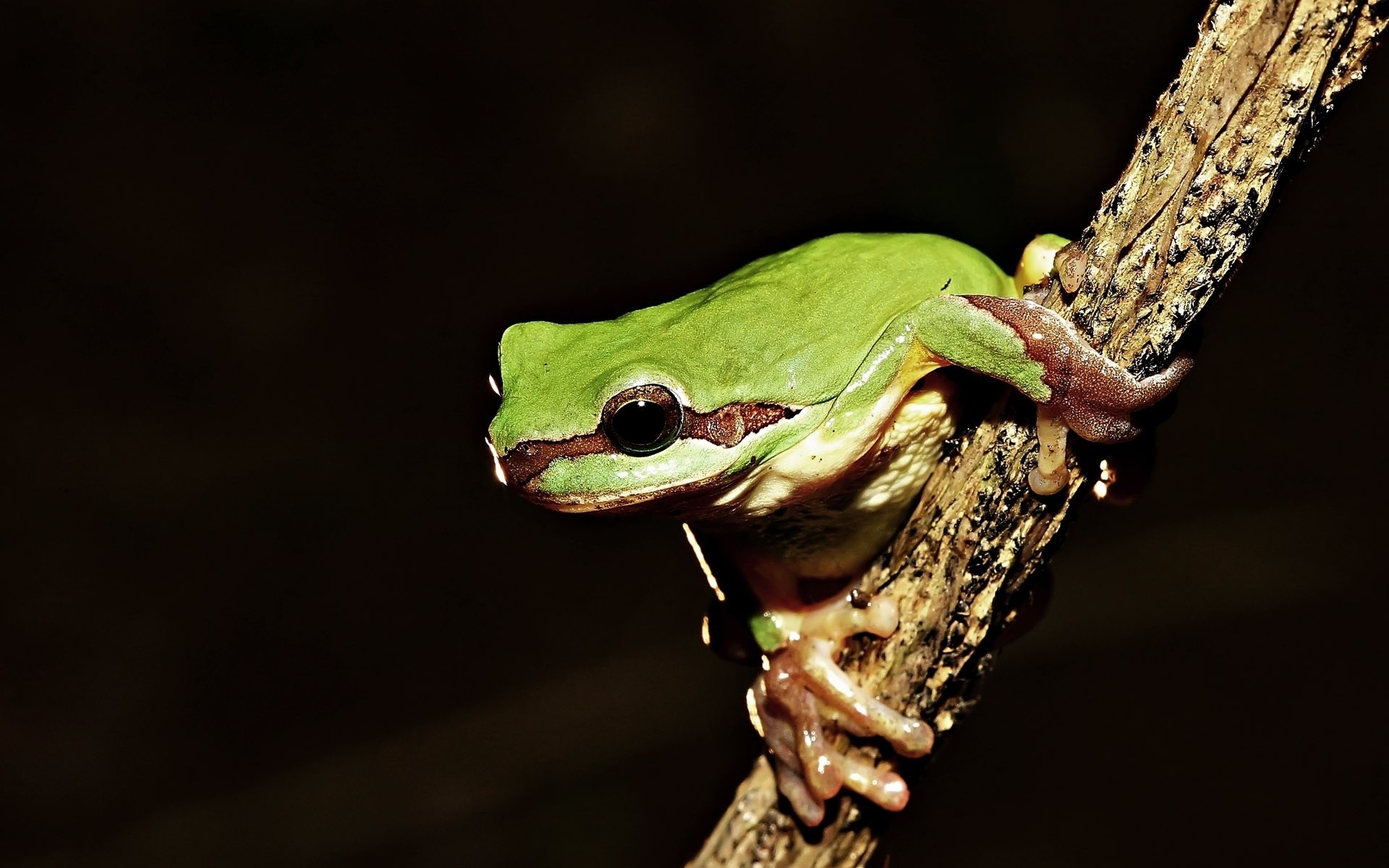 Monotone Tapete für einen Arbeitsfrosch auf einem Ast