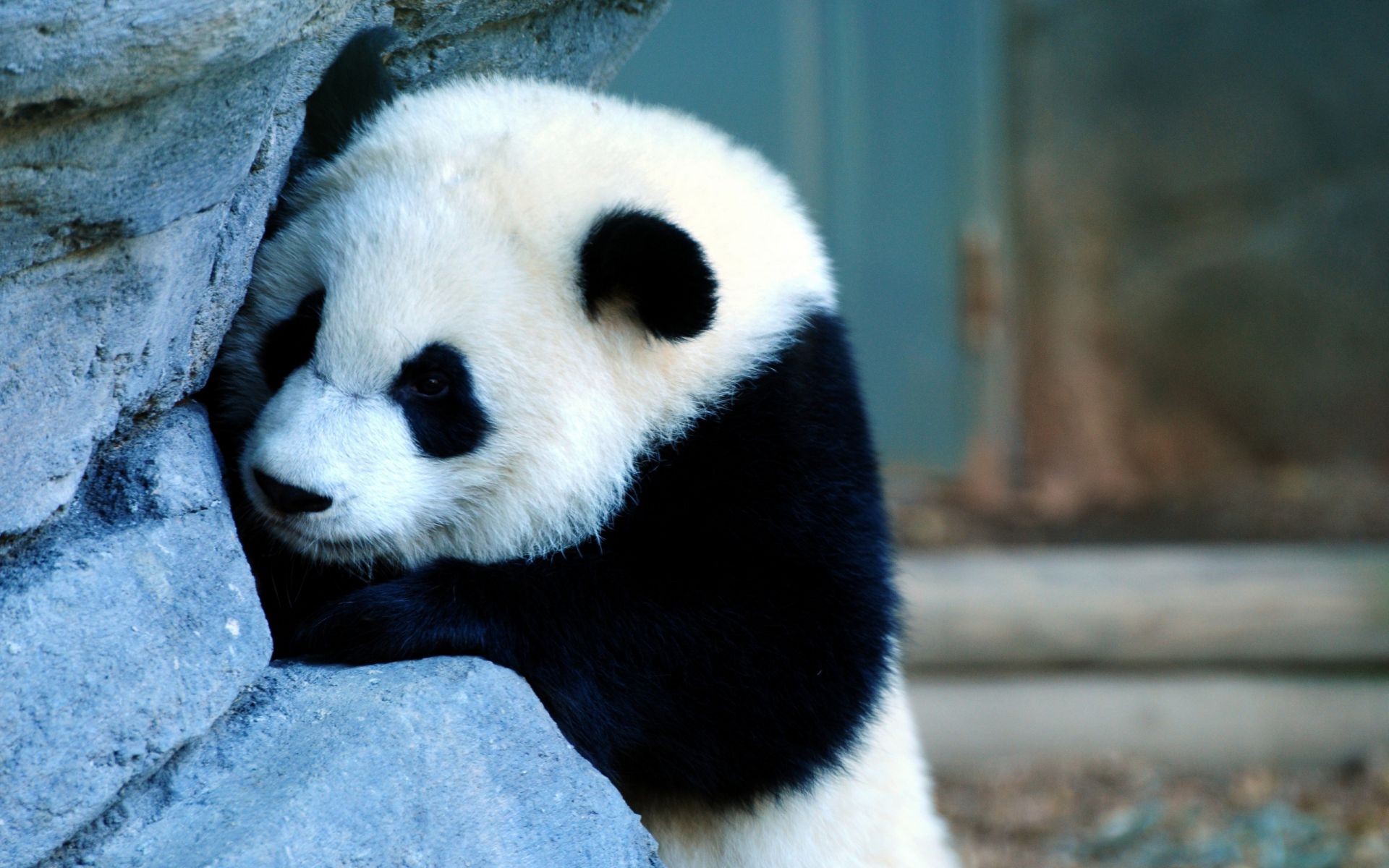 Süßer Panda versucht, etwas in der Wand zu finden, das sie interessiert