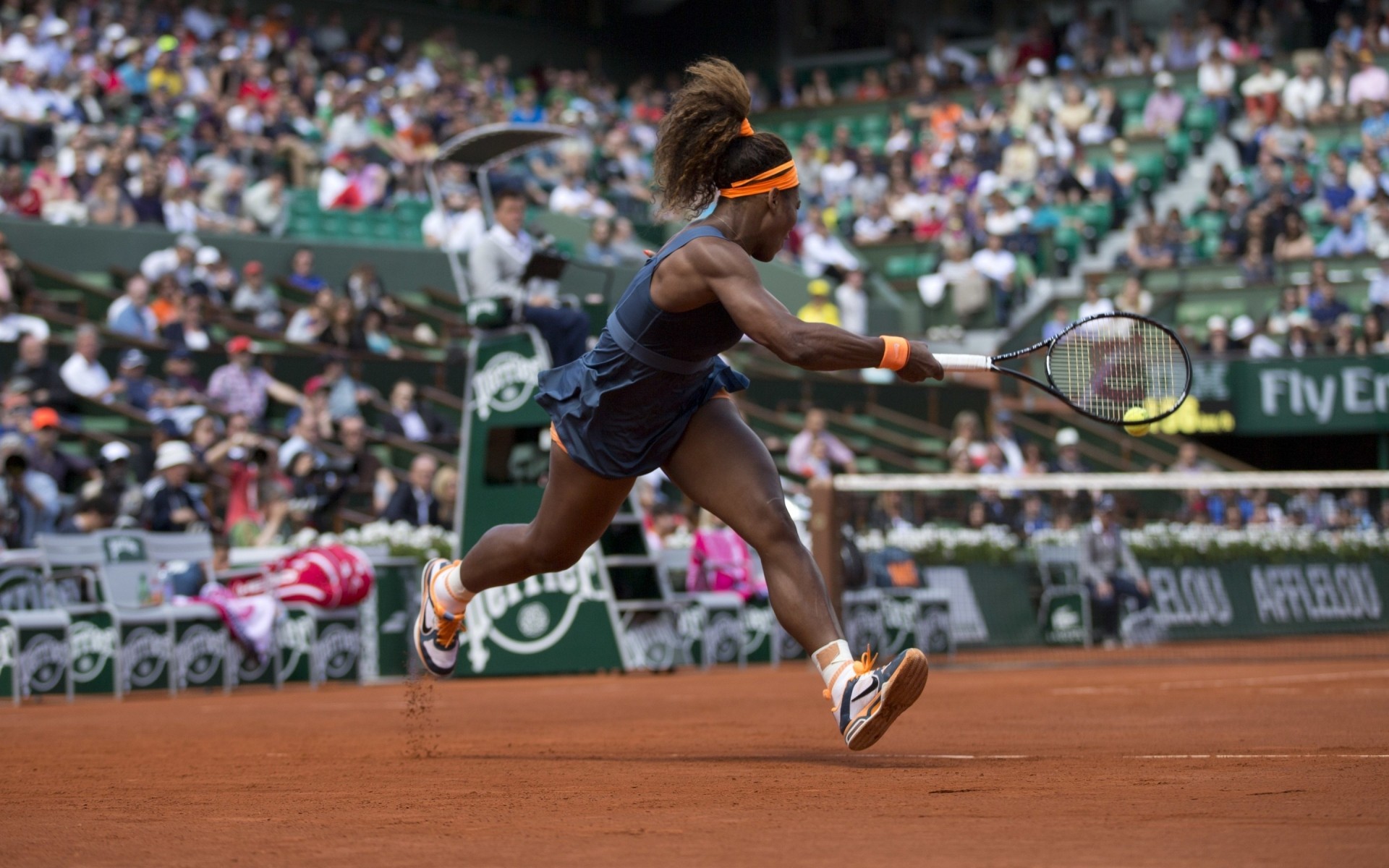 Dunkelhäutiges Mädchen spielt Tennis im Stadion