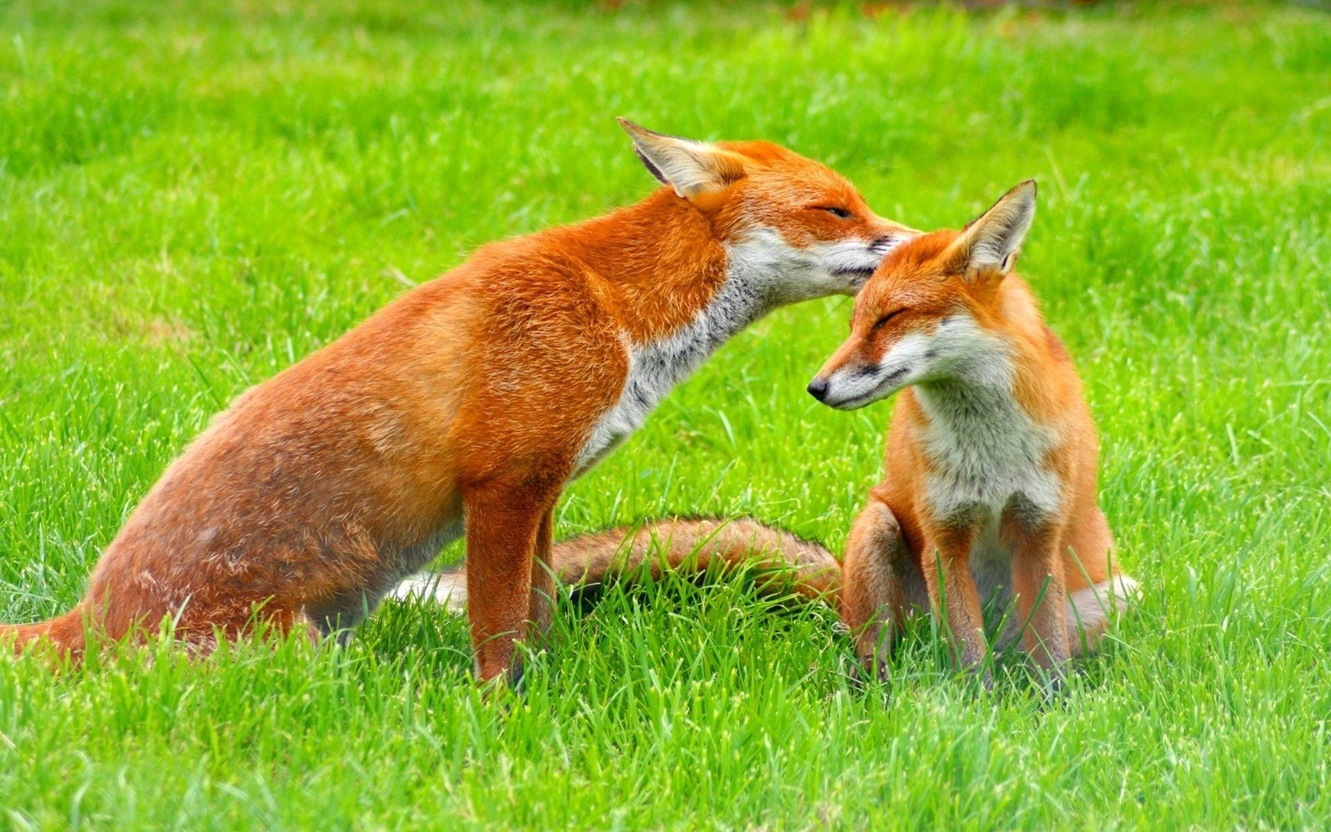 Zwei Füchse auf grünem Gras