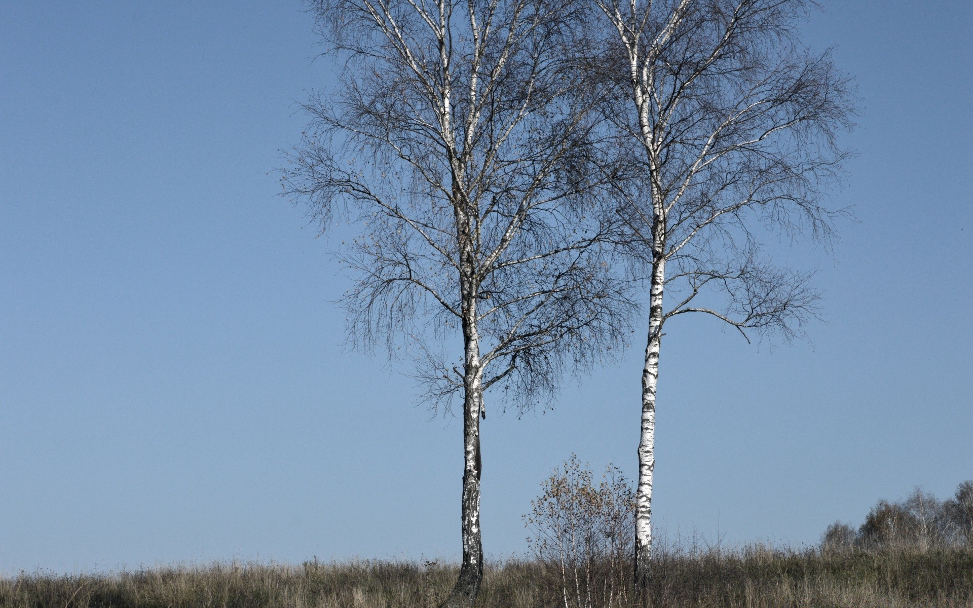 Zwei hohe Bäume in der Nähe des Straßenkollektors