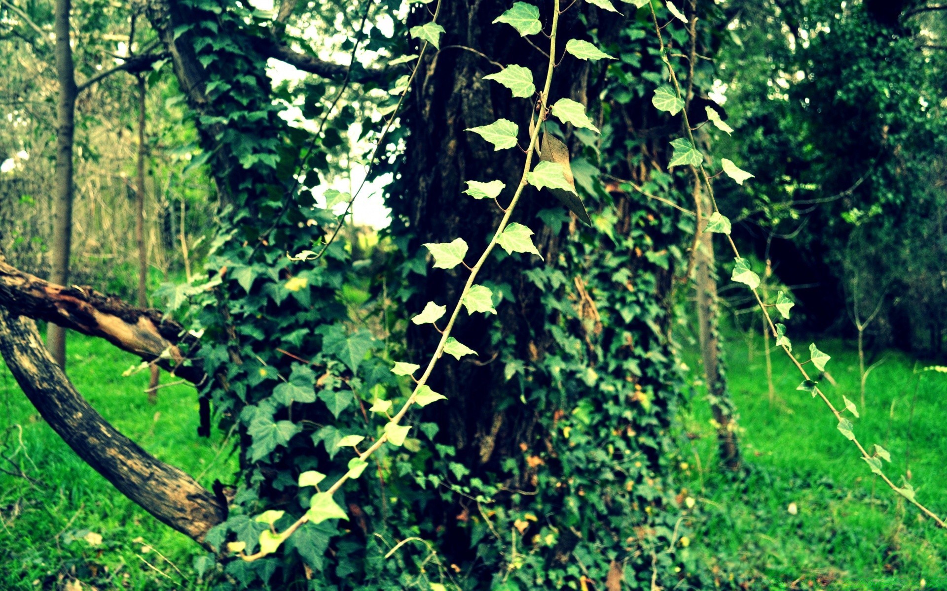 Die Natur. Ein mit Efeu umwickelter Baum