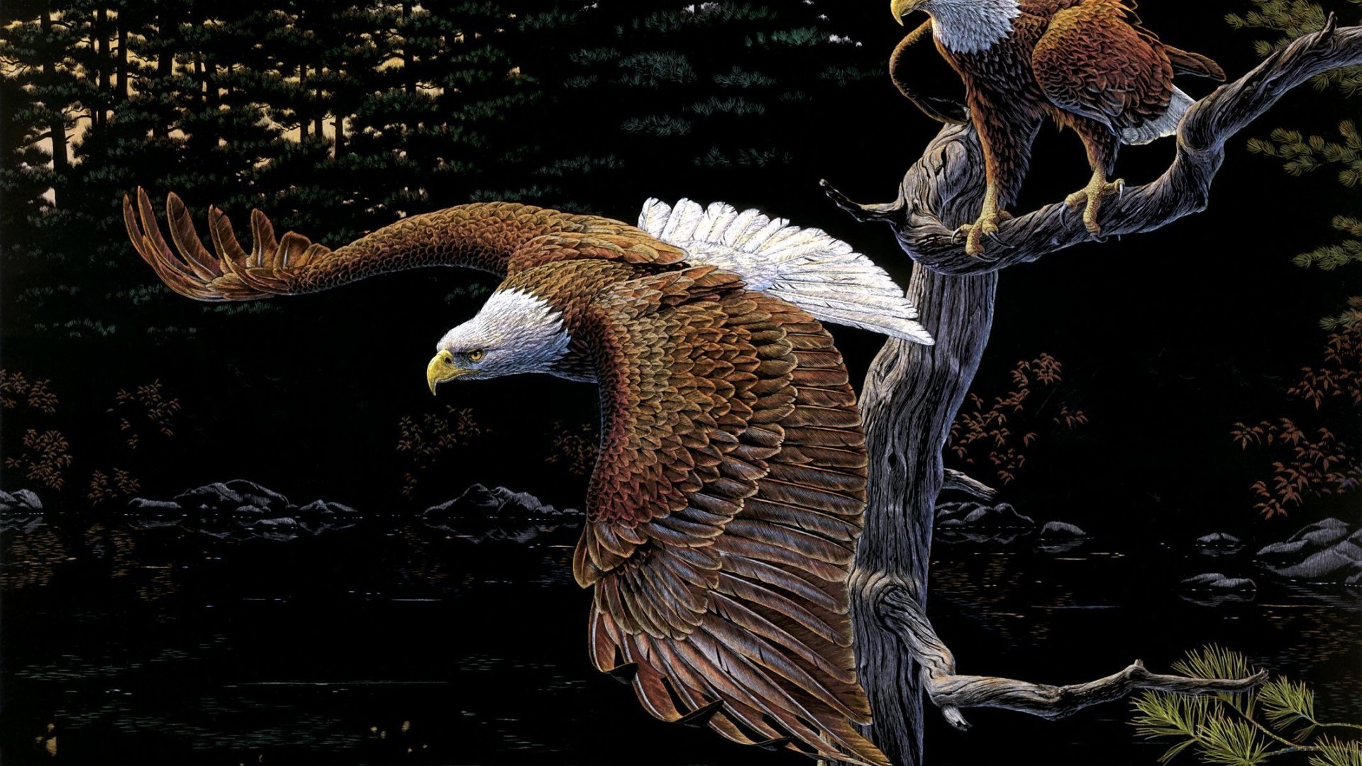 Weißkopf-Raubadler sucht Beute - wallpaper für das Telefon